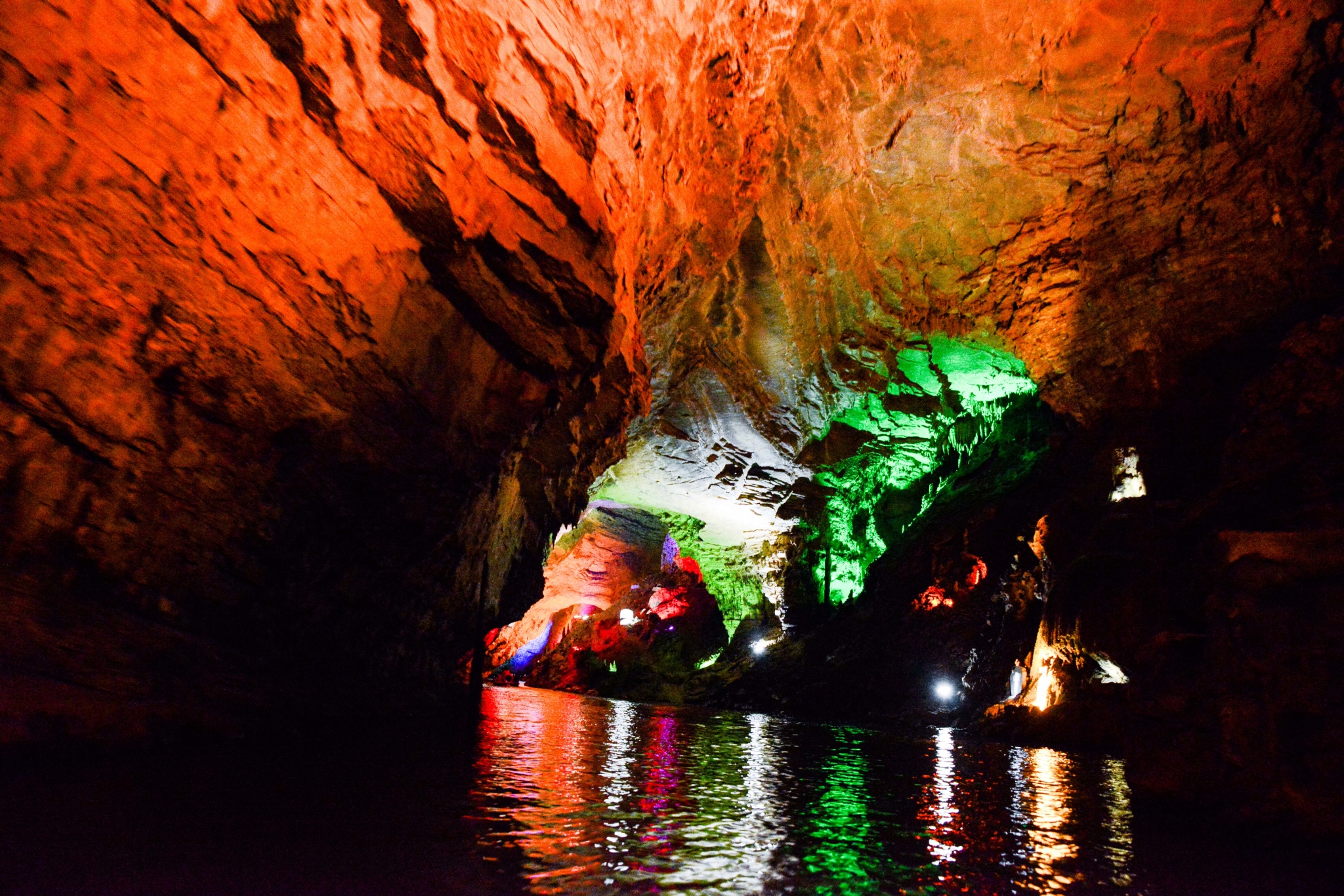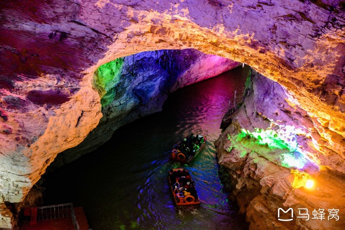 坐在船上欣赏着溶洞又是一种别样的感觉,灯光倒映在水里非常的美妙。