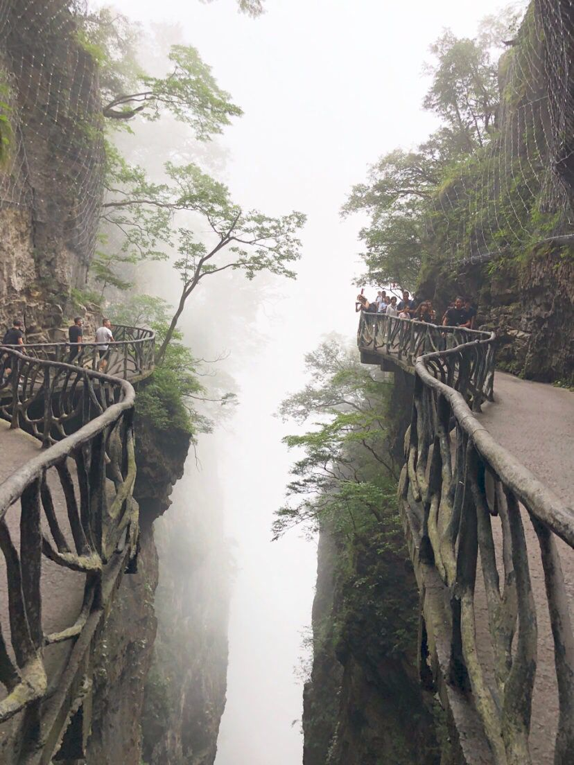 选择坐电梯就是直行👉。个人建议如果体力一般就坐电梯吧(百龙天梯,另收费),我就是太相信自己的体力爬上了乱窜坡,结果和小哥哥最后爬山爬到怀疑人生😹,由于是淡季,选择爬山的人更是寥寥无几,所以爬到最后也真是靠着强大的意志力和幻觉爬到了山顶✊。👉袁家界(阿凡达,悬浮山)由于是经典中的经典,此时请发挥你的强大的想象力,你看这山像什么,它就是什么。