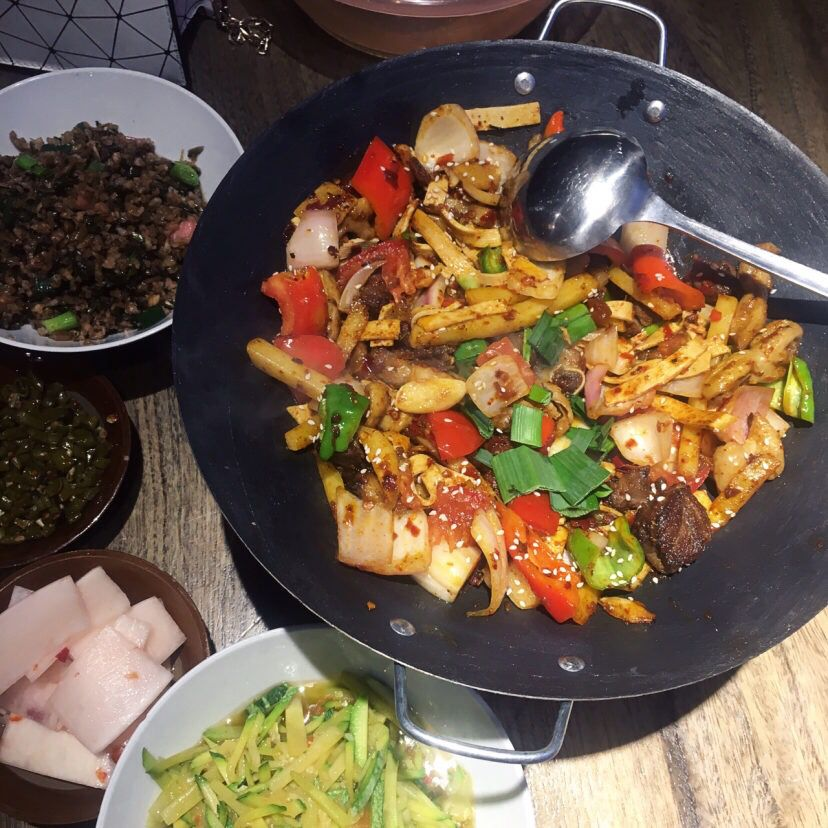 食😋晚餐:胡师傅三下锅(大众点评推荐,味道很好,价位便宜。2人3菜120元左右)👍👍👍住😄客栈,推荐✨老板很好、住宿环境超棒,离天门山索道入口步行5分钟👍👍👍