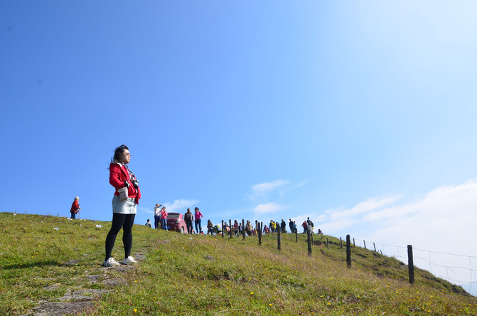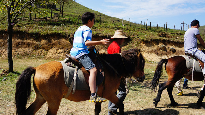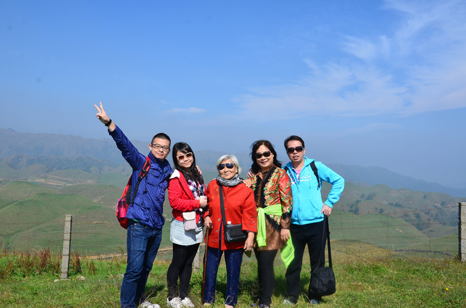 在山底下用完午饭后,大概是2点钟,正式出发前往南山牧场。一直到现在,我都搞不明白,为什么南山牧场的游记少之又少,计划行程的时候,可以参考的地方并不多,连我们决定去南山后也动摇过,这个名不见经传的景点,顶着南方的“呼伦贝尔”、中国第一牧场的光环,却为何那么少人去?本来我们也是抱着拥抱一下大自然的心态,随便去看看是个什么样的地方,没想到,这个选择出奇的好,带来了很多意外的惊喜……所以这一篇游记,我也想更多人知道南山牧场的魅力,不要埋没了这么好的一个景点……南山牧场位于湖南邵阳市城步县,龙脊过去约120公里,路都很不好走,期间经过一个采石场,路都被货车压得稀巴烂,小轿车真的磕磕碰碰走得提心吊胆,从广西过境,有趣的是,广西湖南交界的地方,原本稀巴烂的路,一进去湖南界马上变成平整的柏油路,不禁让人感叹两省的经济差距,毕竟是毛的故乡啊,哈哈……我们抵达景区的时候,太阳已经下山,我们下车买门票的时候,一出车门,哇,像是到了冬天一样。南山牧场平均海拔达到1600多米,10月份,山下还是20多30度的时候,这里只有几度~对于我们这些饱受广州酷热煎熬的同学来说,这种温度真是太舒服了~!当晚入住景区内的宾馆,旺季真是宰人没商量,提前不在网上预订根本没有房间,而且还要预付,380元/晚。【第四天】今天的天气超级给力,一早起来阳光灿烂,但是温度也很低,只有十几度。南山牧场景区非常大,来游玩基本都要自驾车,甚少见到有旅游大巴,这可能也是人少的原因之一。按照游览图,我们直接开车前往中国第一牧场。