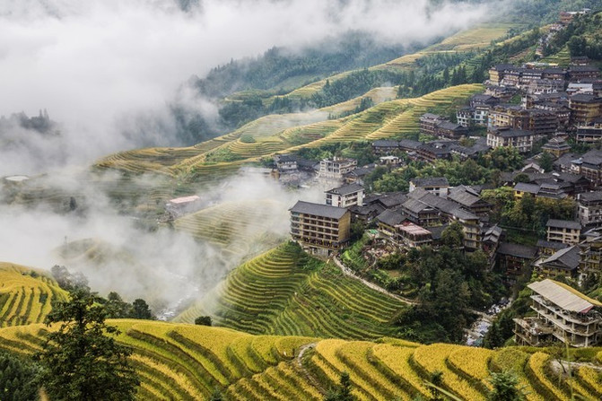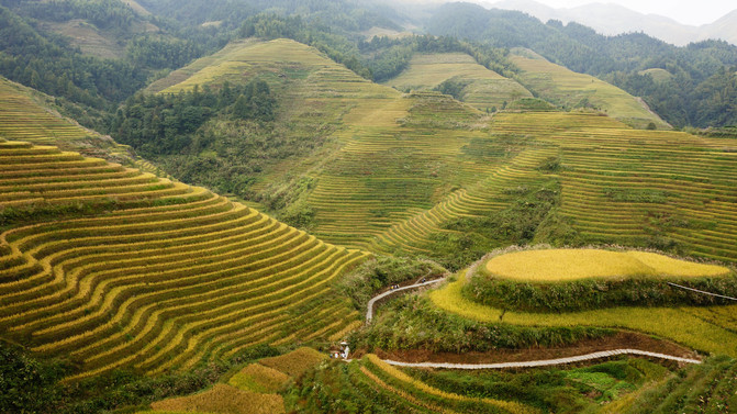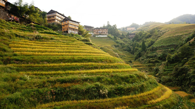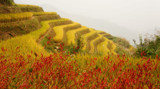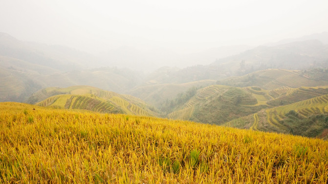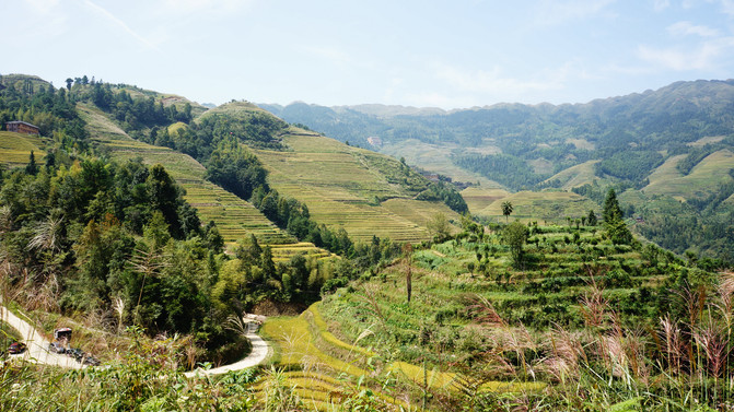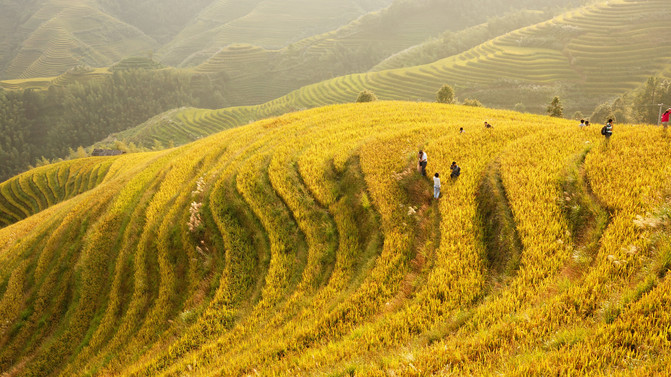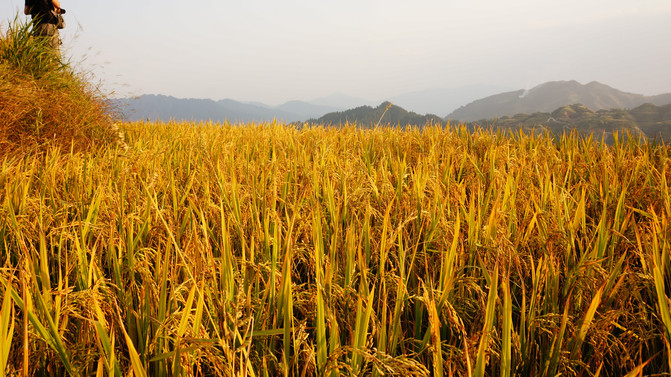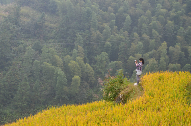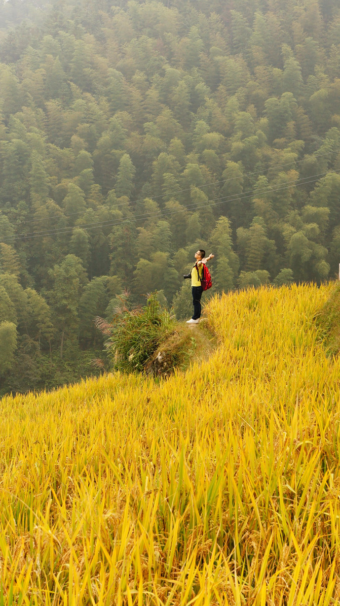 可是到了山上,看着金灿灿的梯田,呼吸着不同于城市的气息,一扫路上的疲惫……