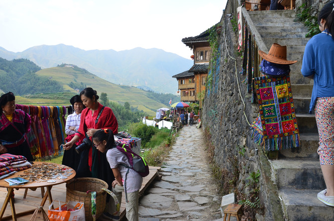 早上起来,在客栈享用了一份美味的米粉后,就出发去2号观景台。田头寨走到2号观景台,实际上需要不到半个小时,路上经过另一个小寨子,名字是什么我也忘记了,买了一个超级可爱的全手工编织的小背包给小侄女~