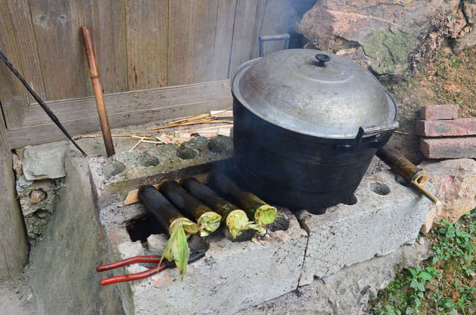 这就是我们晚上住的田头寨!看到了传说中的竹筒饭……