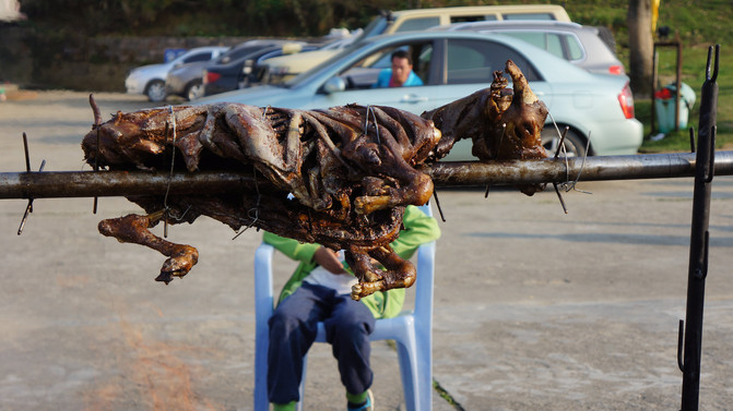 有人说,西街似丽江而更胜丽江。我想说,如果带着这样的心境来西街,恐怕要失望了。难得的地方,就是山,到处都是一群群的山。除此之外,乱、脏、吵,真的就是个小县城而已。回来看看,西街的照片,我总共也没拍几张。饭点快到的时候,西街每家饭店门口,都站着手捧菜单的伙计,然后你一路走过去,就会一路走上来无数个伙计,递着菜单问,老板要吃饭吗?那感觉怪极了,好像生生的让西街掉了一个档次。抬眼望去,到处都是某某姐啤酒鱼,某某师傅啤酒鱼。来的路上问司机,哪家啤酒鱼做的最好吃,他回答没一家好吃。是不是什么东西做的满大街都是了就做烂了?那我们晚饭吃什么?当然是啤酒鱼,不品尝一下啤酒鱼就好像没来一样啊。俗就俗吧,本来咱也就是俗人。