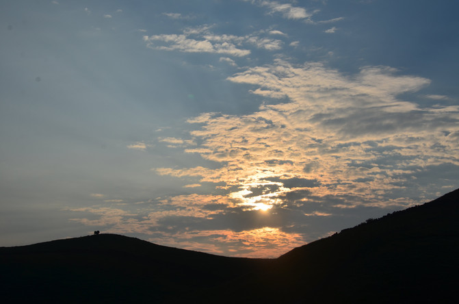 站在这个山顶,后面是我们的营地,而前面,则是这样一番壮阔的景色,我用夕阳不同的景色来表达当时的风景!