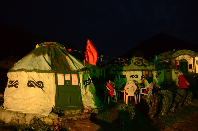 前一天晚上,我们在找宵夜闲逛的时候,发现景区还有一个蒙古包体验场,里面有蒙古包可以住,还可以有篝火晚会,白天可以射箭、骑马,我们当时就决定第二天晚上过来住蒙古包。一个原始简陋、但是五脏俱全,别具风格的蒙古包,国庆区间要200元一个晚上,但是什么就是图个新鲜嘛,哈哈