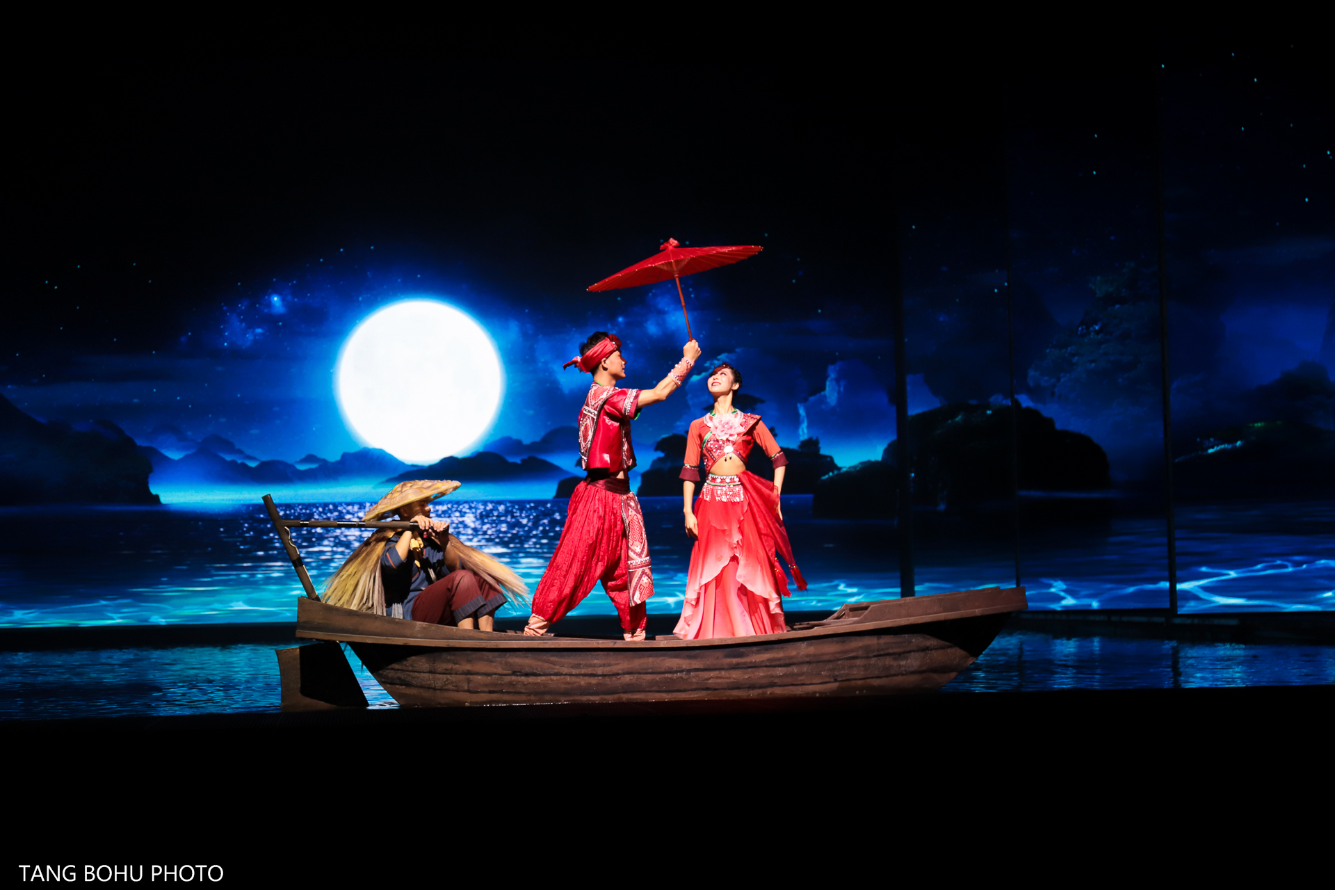 第四场:《 漓江 恋歌》山歌好比春江水,不怕滩险弯又多。一方水土养一方人, 这片神奇的土地孕育出许多传奇人物,刘三姐就是其中家喻户晓的一位。她是月光下听风轻吟的百灵鸟,有着出口成歌的本领,她那优美的歌声遍布山岗,让鲜花为之绽放、云霞为之驻留。