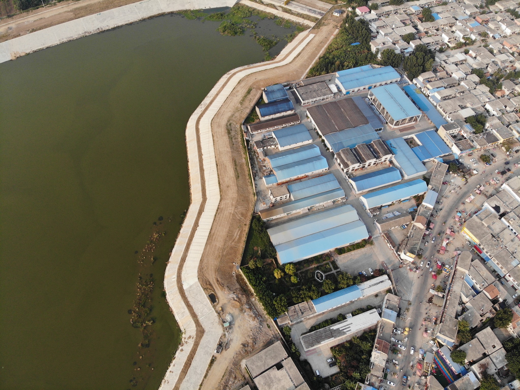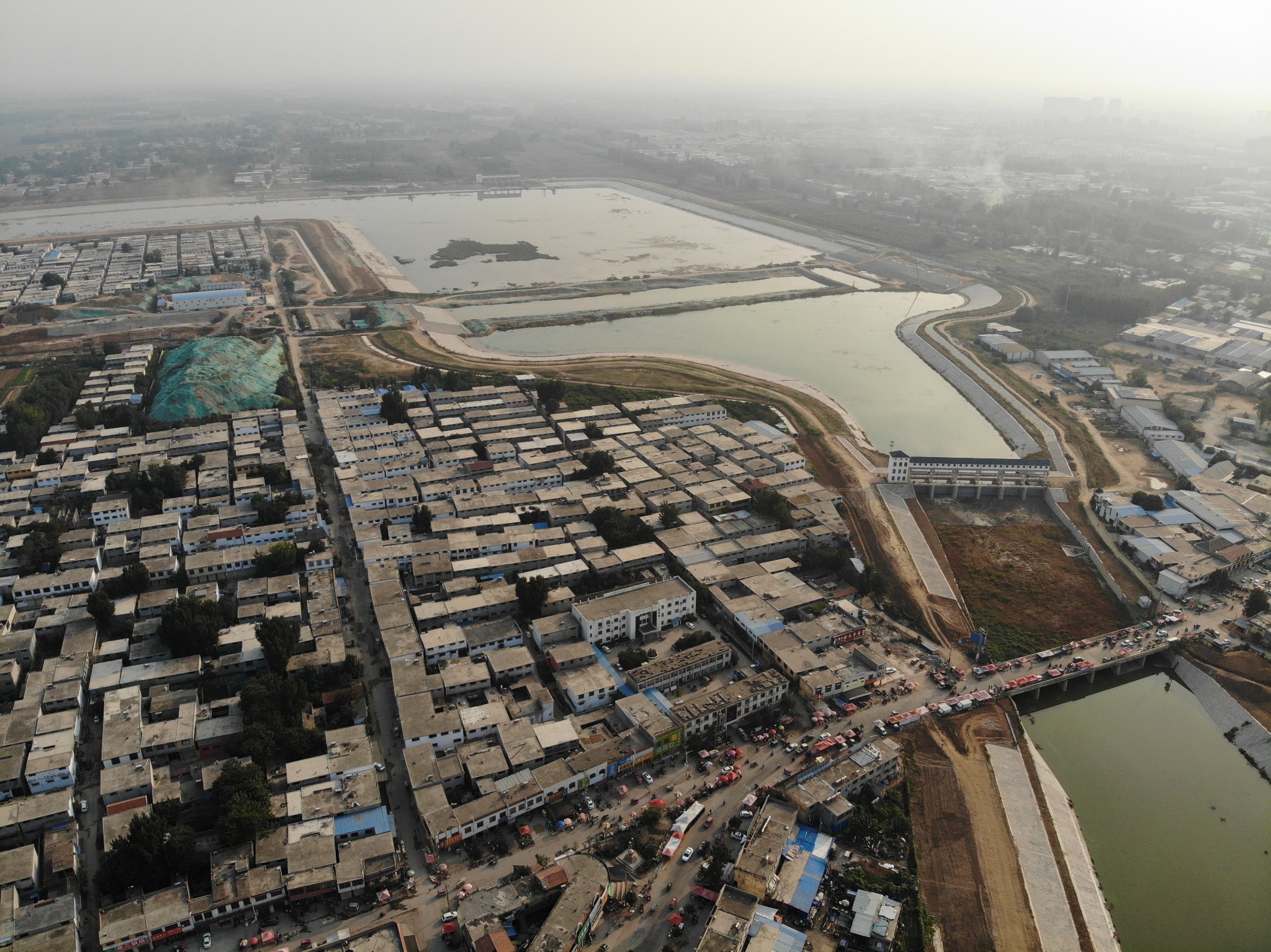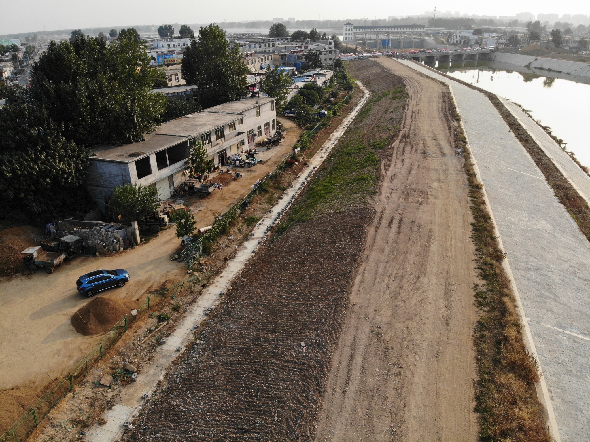 南部大堤下的民居,可从民居右侧小路开车进来,左侧是个临时沙站湖西 侧的民居湖边俯瞰南侧的湖区东 沙河 桥头,也是荆河东路的延伸段