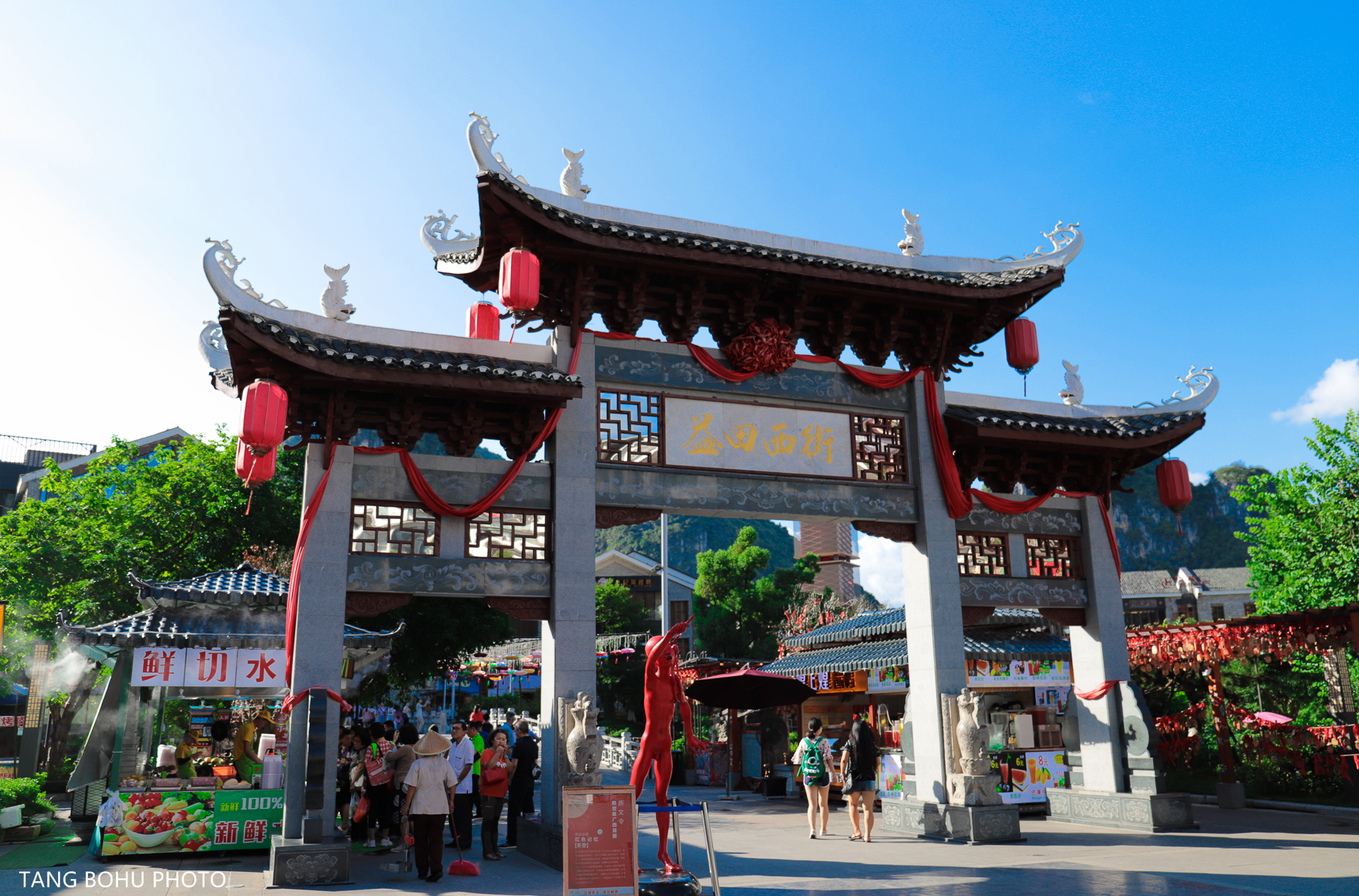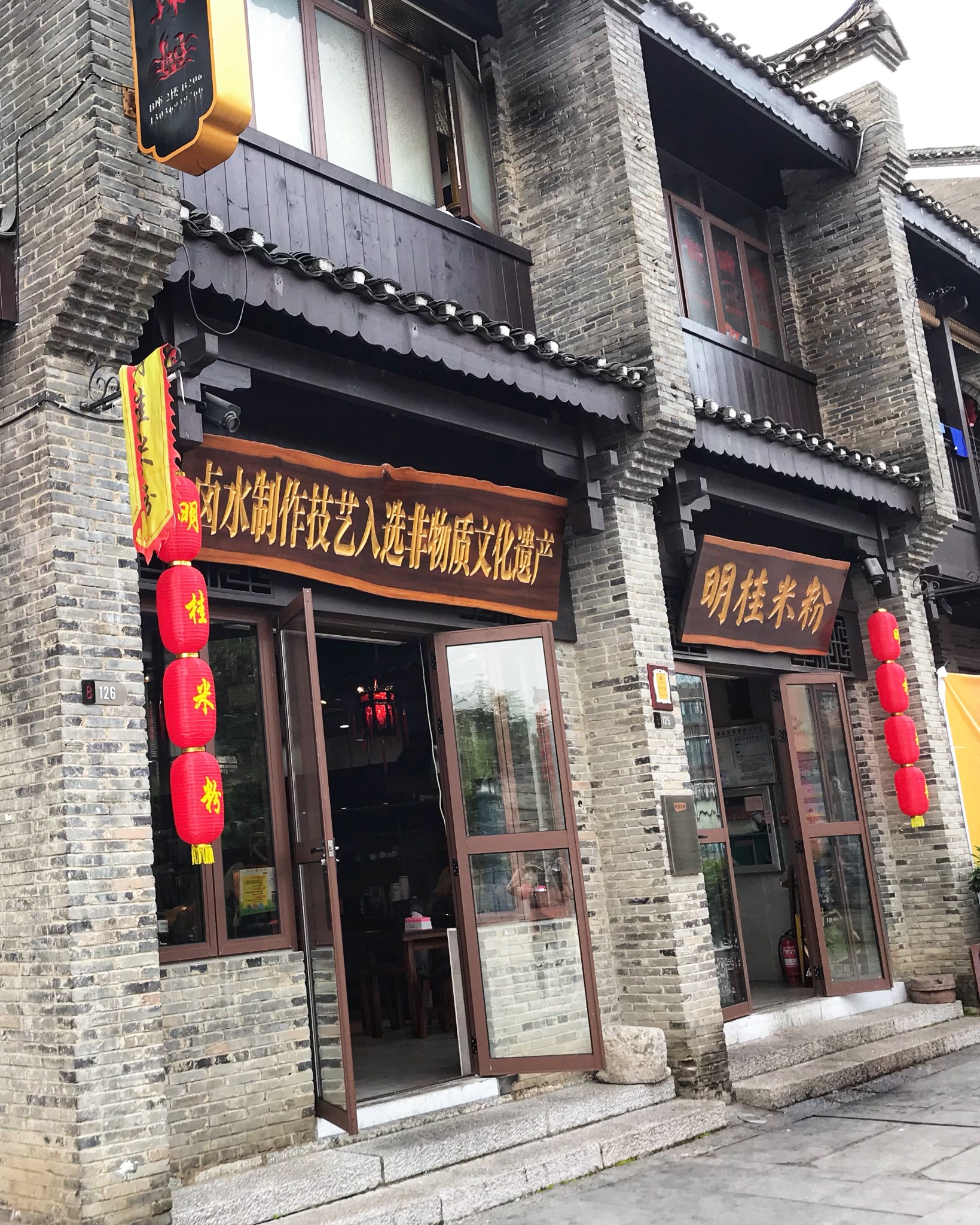 初见,从一碗米粉开始 最出名的美食莫过于米粉了,一到 就直接奔去吃一碗米粉过过瘾呀。说到米粉那还是有一个传说故事呀。 米粉的传说讲了好多年,传说讲秦始皇派史禄率民工开凿灵渠,灵渠修通了,秦始皇由丞相李斯陪同,微服游览 山水。他老哥子有个嗜好,爱用鲤鱼须、鱼肚来下酒,脆啊。来到漓江 一看,哇, 漓江 里的鲤鱼用手就捧得起,乐得他乱拍屁股,叫船家赶快弄来,银子多多的给。一餐不晓得要用好多条鲤鱼才炒得出一海碗,秦始皇在 漓江 上游了半把个月,杀了成千上万条鲤鱼去。急起 漓江 里的鲤鱼王乱跳,发誓要把秦始皇的游船拱翻去,让他葬身鱼腹!河伯晓得了警告说,帝王之事乱来不得,你赶紧另想办法吧。鲤鱼王急中生智,用大米磨浆制成了鱼须(米粉)、鱼肚(切粉)。秦始皇吃了,拍案叫绝,从此 米粉就问世啦。哈哈。看上去这个传说还是挺用意思的呀,但米粉确是 地区每家每户必不可少的美食呀。 人离不开米粉,就像北方一些地方吃面食的,离不开面食一样,每个地方都有每个地方的特色美食。放下行李后就开始从 西街 逛起了。白天的 西街 都没什么游客,相比晚上来说白天多了一份宁静,白天和晚上的 西街 有着鲜明的对比, 西街 一到晚上就开始热闹起来了。 西街 全长800多米,这里却是 最古老的街道,现在摇身一变变成了商业街,每一个游客到 必去的地方了。