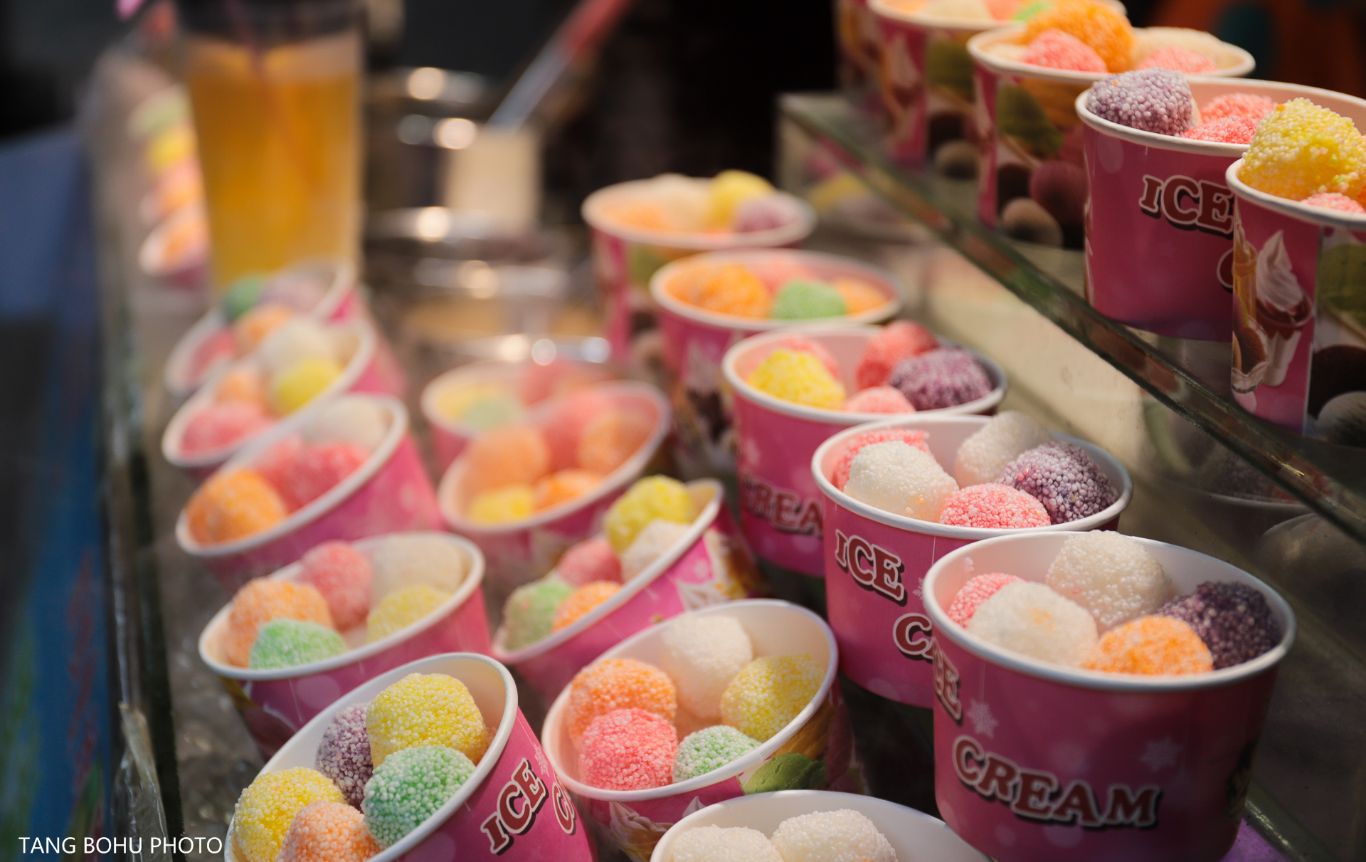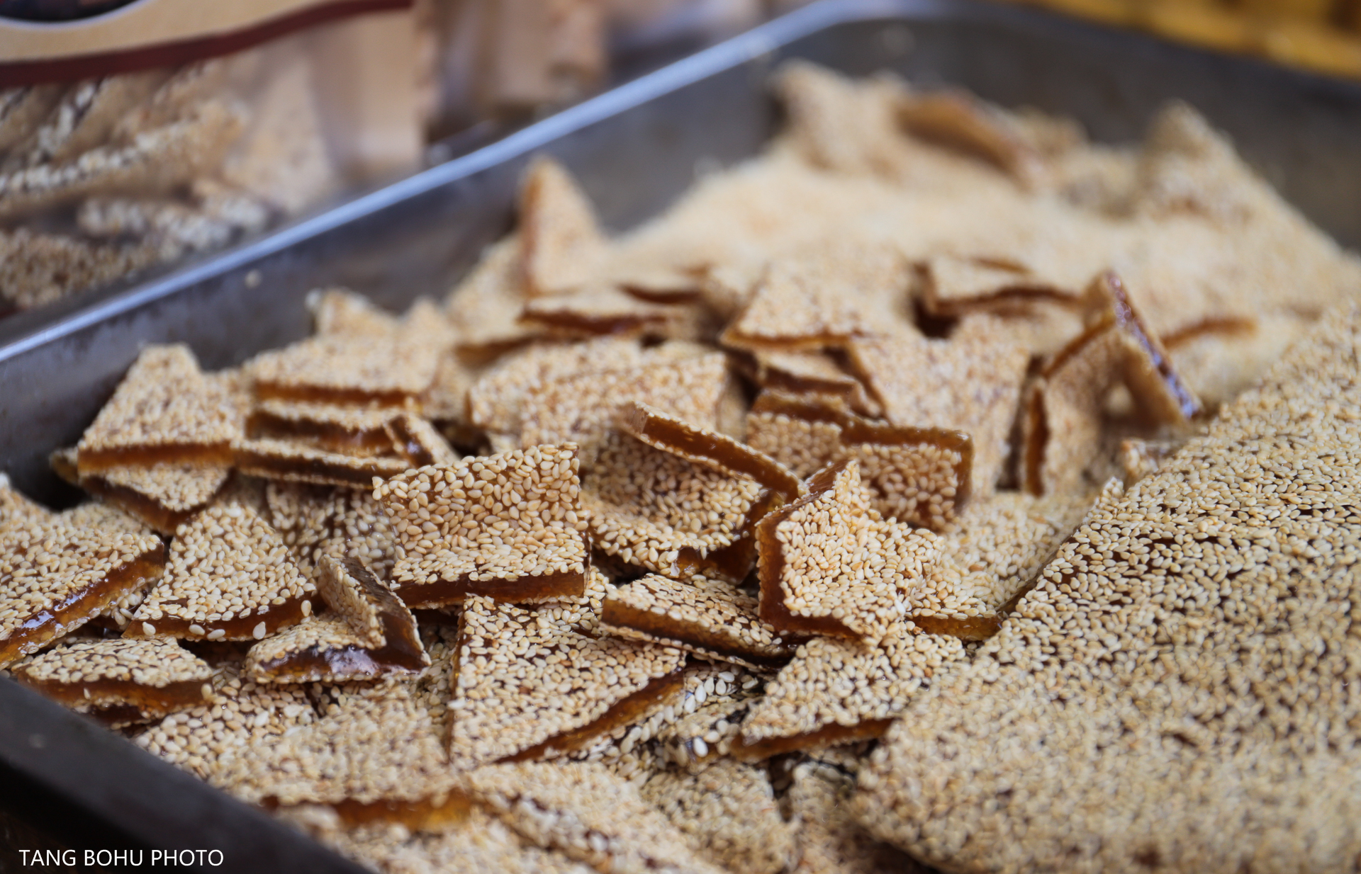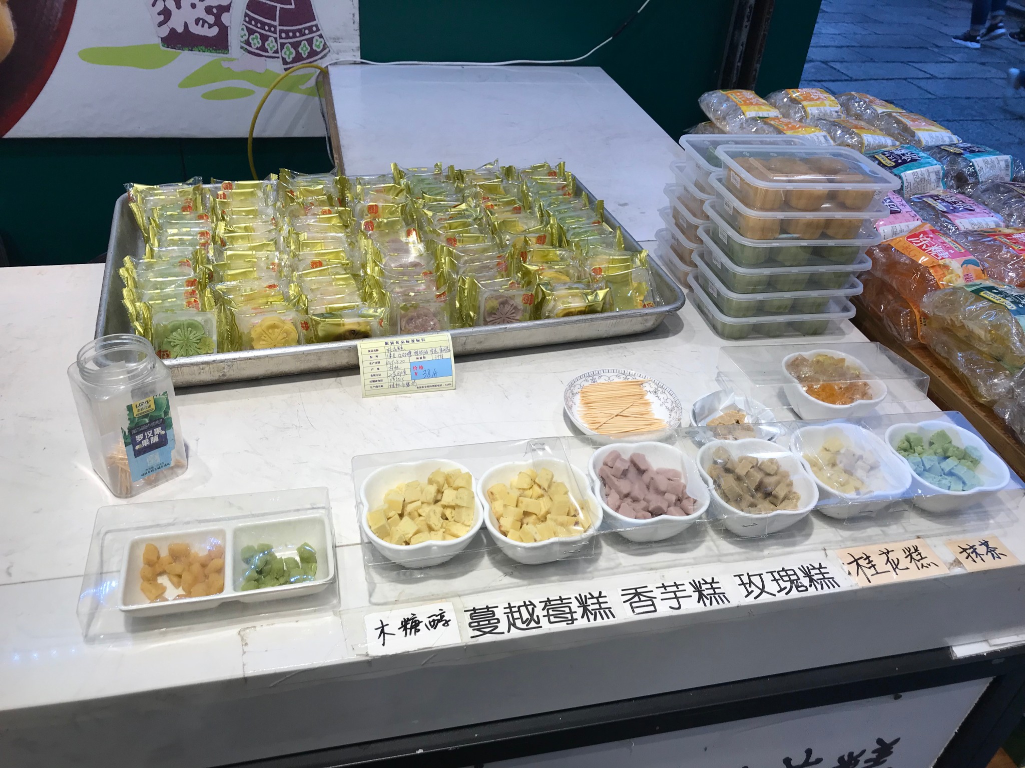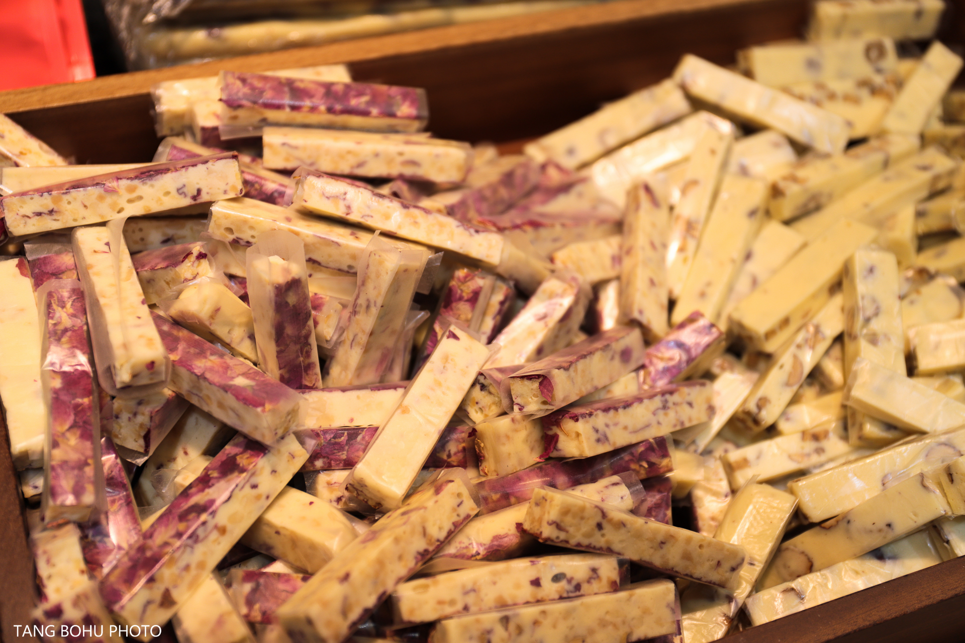 西街 上还有很多卖手信的店,一些小糖果,网红小吃。现场制作的软糖挺好吃的,一位老大爷正在磨着粉,呀,不对呀,一看原来是一个机器人,吓我一跳呀。这个机器人做得栩栩如生呀,太像真人了。哈哈。旁边的真的师傅正在现场切着糖果。有中同口味的软糖,加了芝麻花生,吃起来很香。