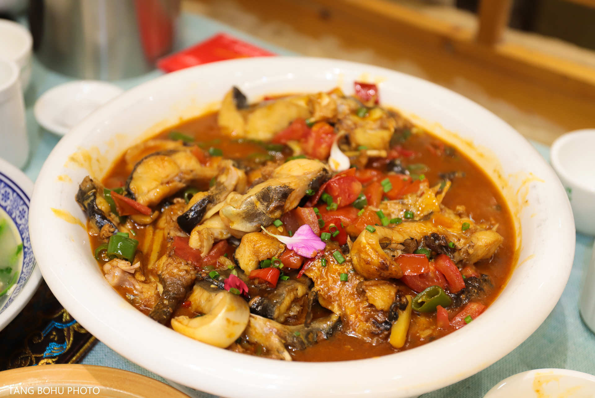 除了啤酒鱼还点了凉粉,当地的豆腐,吃得比较清淡一些。每一家连锁店餐厅做出来的口味都不一样,每个师傅的做法又不一样,所以有人问我吃过 的啤酒鱼那一家最好吃。我觉得最好吃的应该找一些当时的老店做的啤酒鱼味道会更当道一些。游客第一次来 第一次吃到的啤酒鱼肯定会觉得好吃。加了很多番茄一起煮,味道有酸甜辣的感觉。