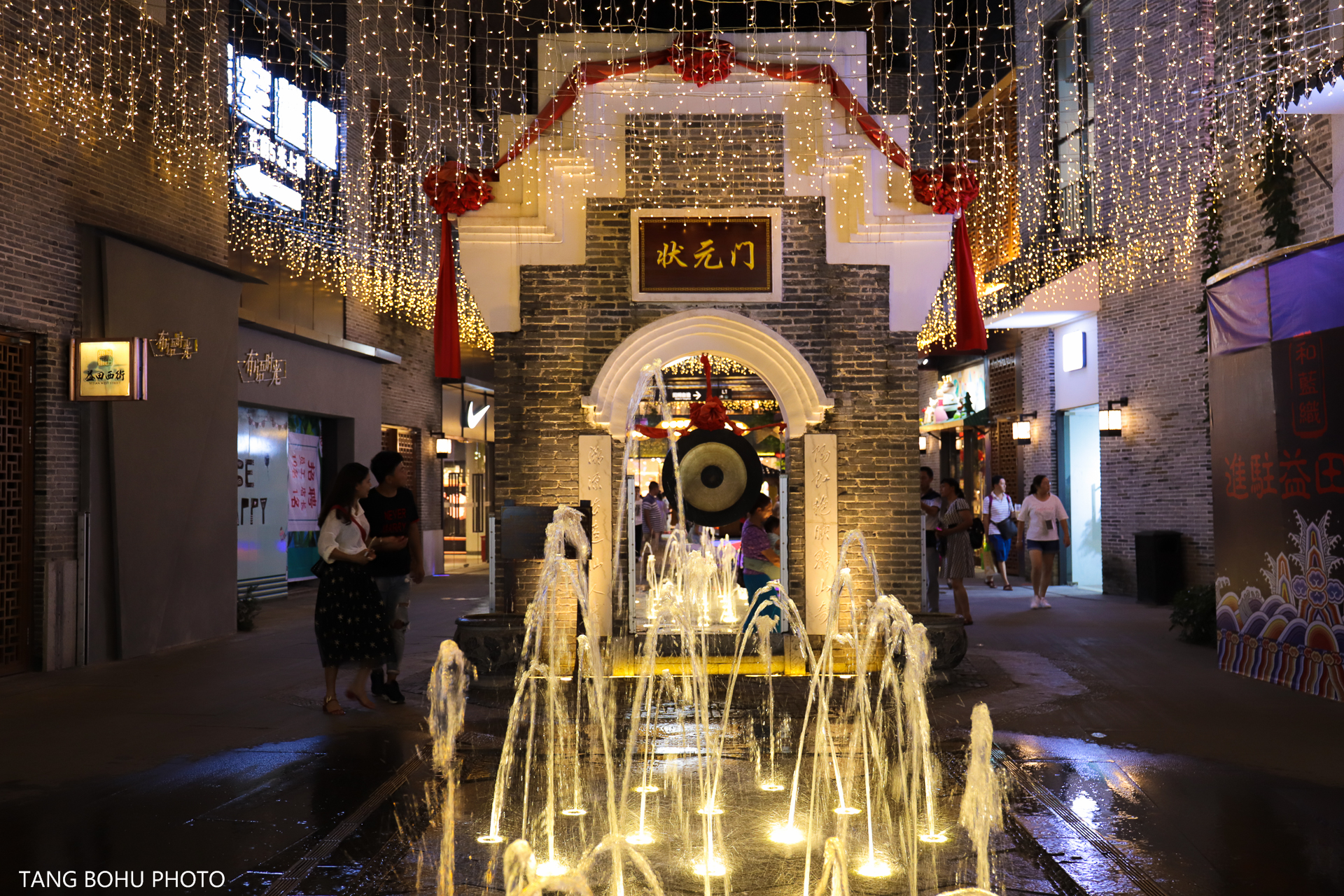小青瓦、坡屋顶、马头墙、木门窗,古戏台的 星巴克 咖啡三楼就是最好看演出的地方了。夜晚的灯光把古戏台照得发亮,把咖啡店开在古戏台里还是第一次见到,独特的风格建筑这里也成了网红的打卡地,一边在喝着咖啡看着手机,一边可以看到下面湖里的演出也是不错的选择呀。 西街 的商业楼集购物餐饮为一体。是你到 最不容错过的地方之一。整个 晚上最热闹的地方就是这里了。