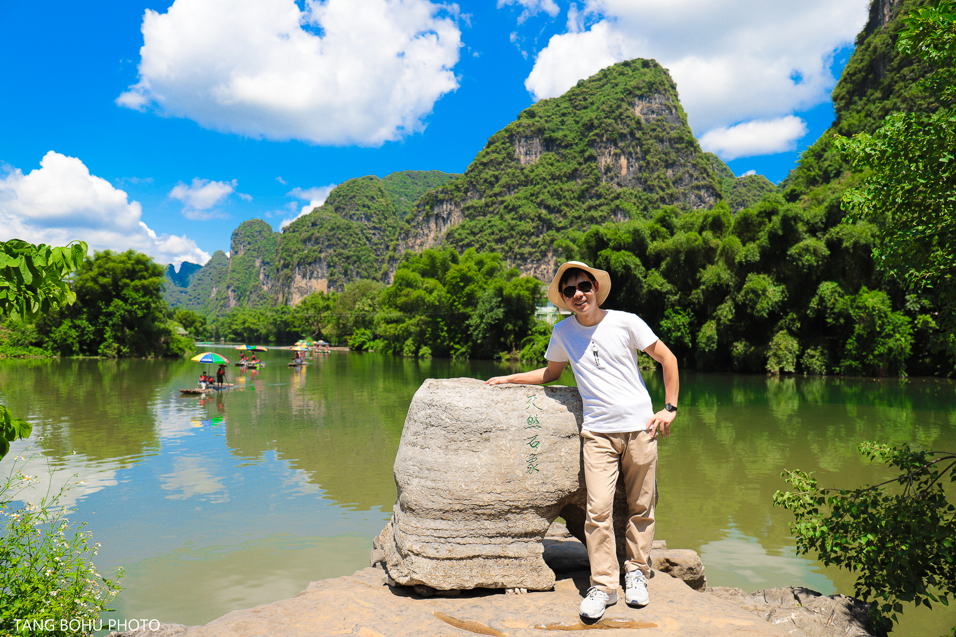 20元人民币的背面图景大家 来兴 坪的目的都是为了看人民币背面的图景,那么这个背景就在兴坪,从码头的桥走过去,再没有走多远就到了 漓江 第一景20元背景图就出现在眼前了。这段竹筏也是 漓江 上的精华段,有很多跟团的游客也是在这里开始坐竹筏漂流的。漓江 之美,美在山水相映间。 漓江 的水,清澈的透明,江底的沙石水草一目了然,几乎感觉不到水在流动;群峰倒影,半份朦胧,半份清晰, 漓江 宛如一条玉带,缠绕于群山之间。 漓江 的山,清新淡雅,绿意盎然,仿佛是一块块无瑕的翡翠,隐身于碧水之上。古人说:男人是山,女人是水,山水和谐满堂春。那么 漓江 的山与男人,水与女人该是人间难觅的一对情痴佳人了,堪称极致的夫影妇行了。