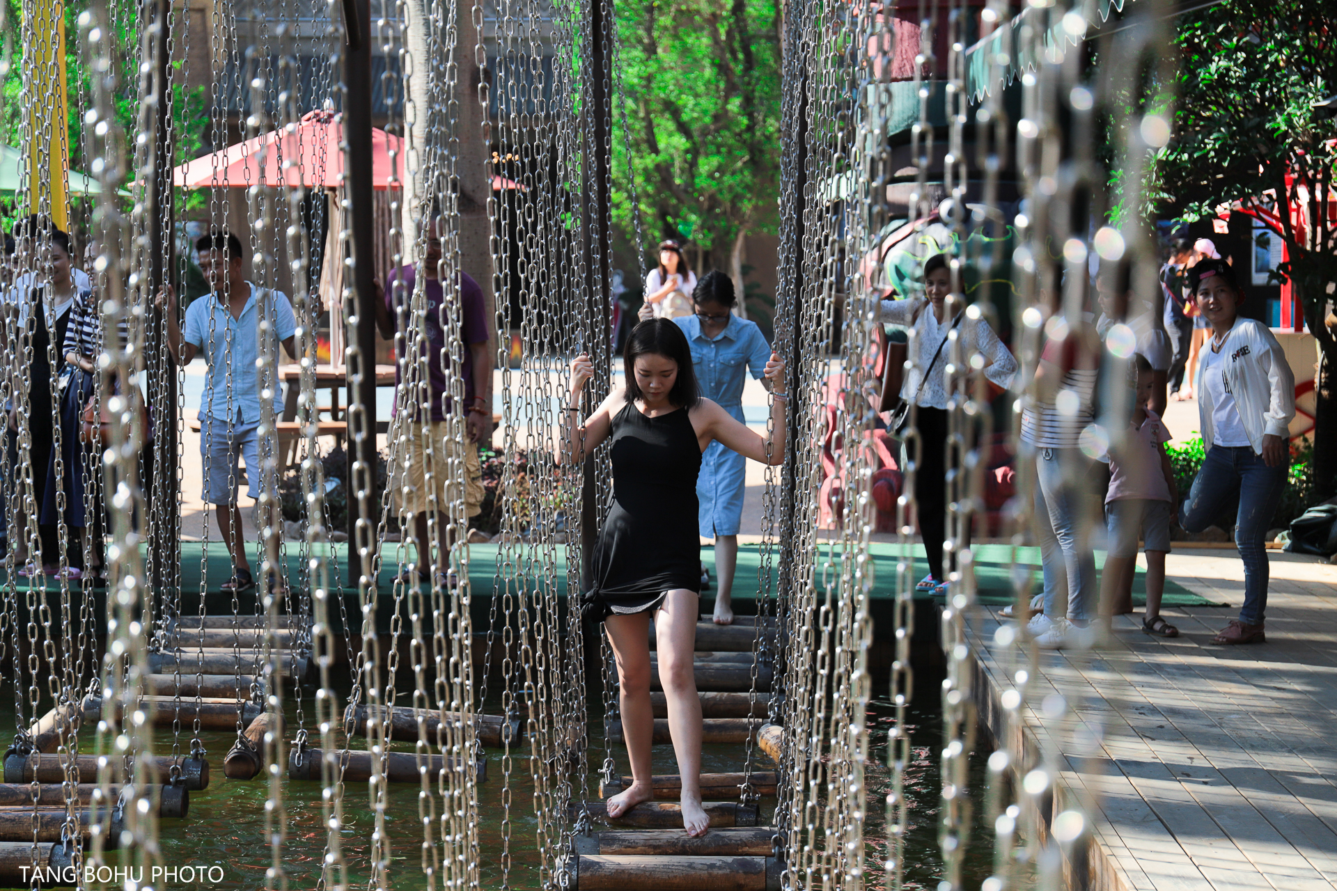 千古情景区内有着大型高科技为主的互动剧场,引进境外先进的技术,打造形式新颖,集视觉、听觉、触觉等综合体验于一体的体验,这才是游玩的正确打开方式。小朋友逛累了可以坐一下丛林转马,坐坐小海盗船等等室内游玩的地方,让每个小朋友来这里玩得开心快乐。除了玩的外还有吃的,蘑菇吧有饮料等小食。这里集休闲、美食、娱乐于一体,仿佛置身于美食的江湖。水池玩水是夏天受欢迎的一个项目,有好多小朋友在那边跑水上漂,还有一些走在平衡木上拉着铁链慢慢移动着,当然了有些小朋友跑太慢了掉入水池里,换来一身的凉快呀。美女也不甘落后,卷起裙子一步一步的向前移动着,没过多久 成功 了。有兴趣的可以去体验一下,提高自已的胆量呀。