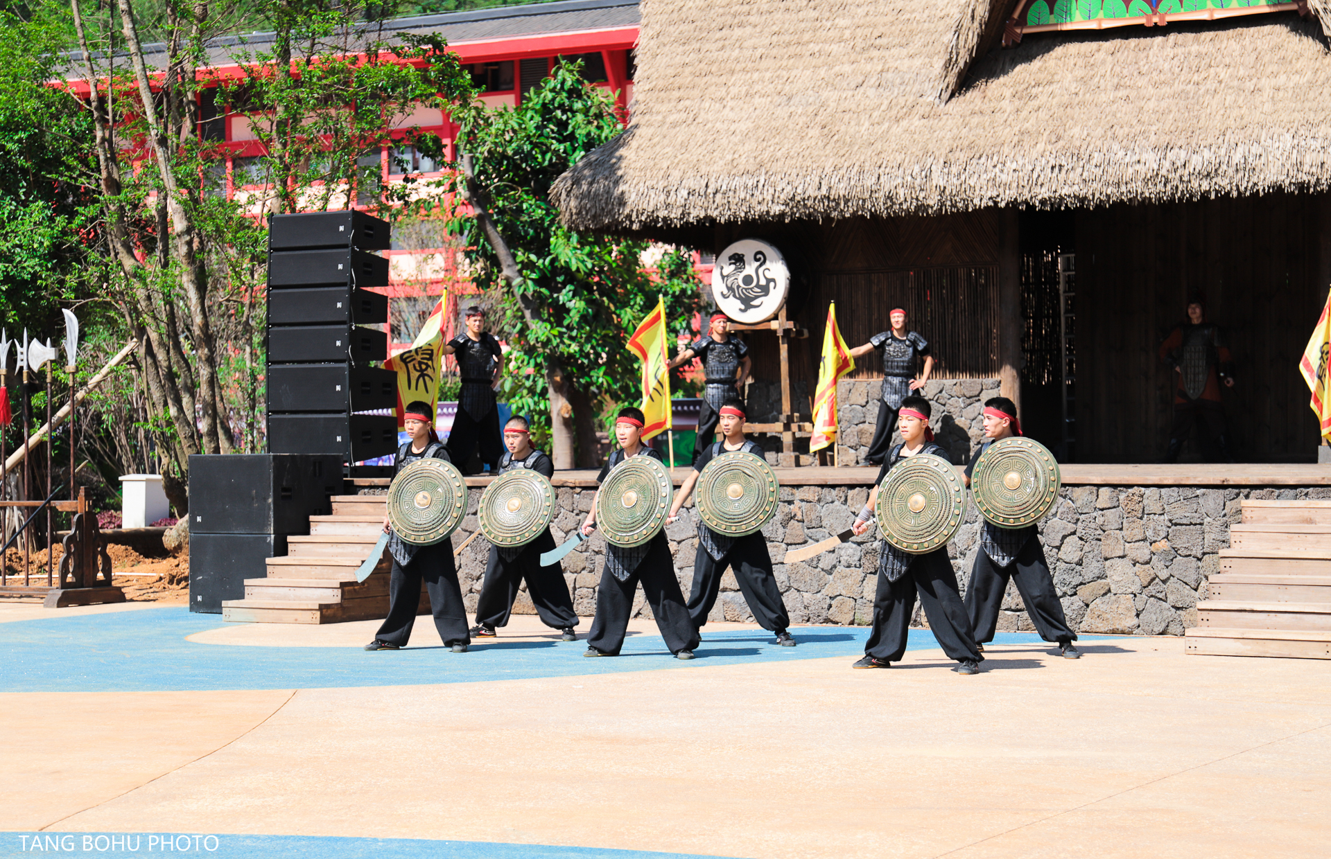 千古情广场的表演很精彩不要错过了千古情广场上演灵渠点兵,空中翻转个个都是好身手呀,各种气势展现得淋漓尽致,就像是武打片里的一样,每个演员都配合得很好,精彩万分呀,让在场的游客掌声一片。相传秦始皇统一中原后挥师南下,准备统一百越。出征前夕,秦军在灵渠点兵。士兵们训练有素,个个身怀绝技,将刀、枪、剑、戟耍得淋漓尽致,为我们展现秦军雄姿英发、气壮山河的豪迈气概。
