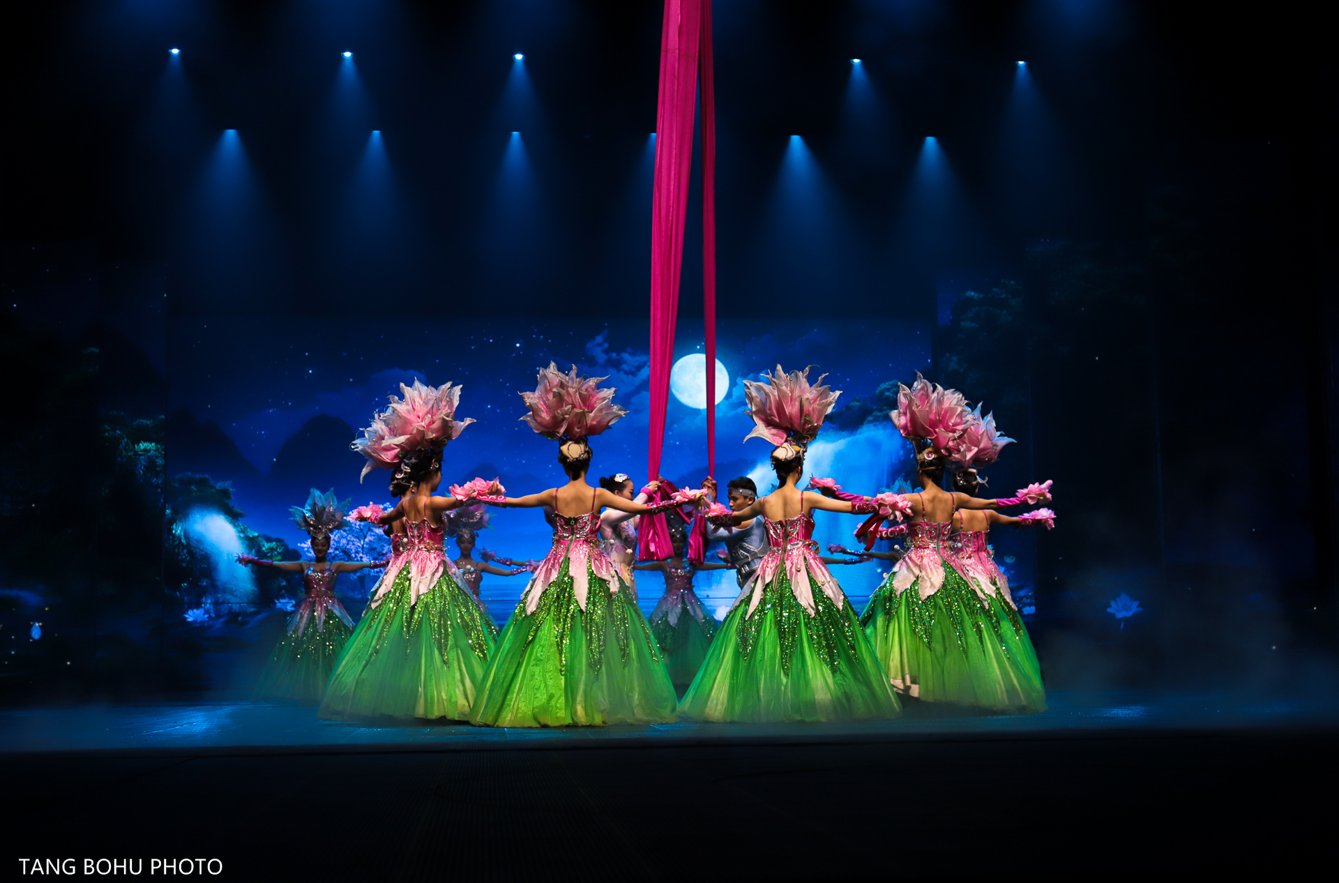 伏波将军和叠彩仙子从天而降,拯救黎民。为保此地永久昌盛祥和,他们化作了山川河流,生生世世守护着这方水土。精采的表演,采用高科的舞台,让声音,表演者配合得很融洽,精彩的演出引来了观众们的一阵阵热烈的掌声。舞台运用先进的声、光、电、全息等高科技手段和舞台机械,让演员们倾情演绎,呈现出美轮美奂的演出。第二场:《大地飞歌》 是个多民族聚居的地区,壮族、瑶族、侗族、苗族、彝族等少数民族在这里和睦相处,流传下许多优美的舞蹈、动听的歌谣。每年的三月三,是 广西 地区盛大的歌圩日,少数民族同胞相聚在 ,用欢快的旋律、轻盈的舞姿表达对爱情、对幸福生活的憧憬和向往。第三场:《千古灵渠》公元前221年,秦始皇统一中原后,挥师五十万南征百越。秦军一到达立即遭到百越的顽强抵抗,加上岭南山路崎岖,粮草转运困难,三年久攻不下,以致秦军遭受重创。为尽快打通运兵输粮的 通道 ,秦始皇命众将士开凿灵渠。北有长城,南有灵渠。秦军历经千难万险,终于开凿出了灵渠,实现了七分入湘三分入漓的伟大壮举,沟通了湘江、珠江和 漓江 的交通,将先进的中原文化送到整个岭南,助秦始皇完成了 中国 历史上大一统的伟业。 从此便成为 南通 海域、北达中原的重镇。时至今日,流淌了两千多年的悠悠 漓江 水,依然用它甘冽的清流,润泽着广袤的岭南大地。