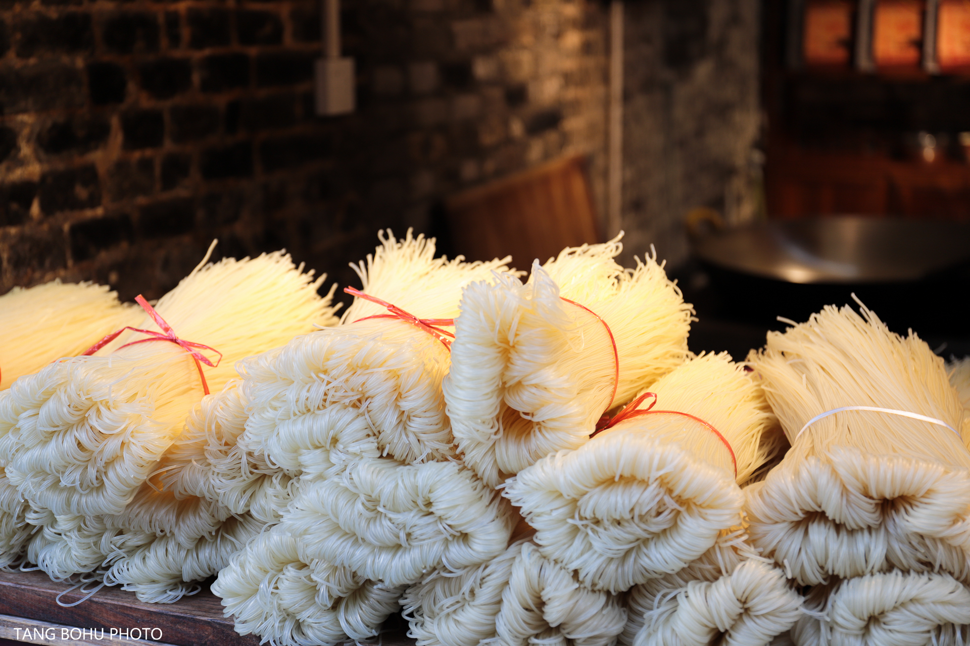 西街人员叨叨:新的人肉三脚架培养计划看过我游记的小伙伴大概知道,作为一个没有男票的妹子,出行拍摄全靠各式各样同行的人肉三脚架们,这次同行的小岚妹子,行前没有用过单反,也成为新加入我人肉三脚架阵营的小伙伴一枚。本次使用相机:佳能5D3本次使用镜头:24-105/f4.0 50/f1.2因为这次行程比较小众,我们联系到了妹子在 朋友进行租车,朋友兼职司机又兼着被我们瞎问话的导游,幸好因为是当地人,才没有被问垮。三人一车一相机的半自驾行程就是本次的 三宝组合。Day1:路口米粉到 的第一件事你会做什么?去 ?看 象山 ?或者是登高望远?而我觉得最能感受到 这片地域的事情,就是用一碗 米粉说:“嗨, 你好”这家 米粉店在网上叫做“路口村义和米粉”,地点可以点评里自寻。可以说环境是对于有洁癖的人会掉头就走的类型,但确确实实是当地的粉店,去吃的游客很少很少,基本都是当地居民,二两米粉不到五块钱,汤清甜,粉爽口,吃到口里就原谅了这个环境。回头问了问司导,为什么这家味道会不一样,司导说,这家在山脚下,他们家用水都是山泉水,从做粉到汤,原料好所以味道不俗。