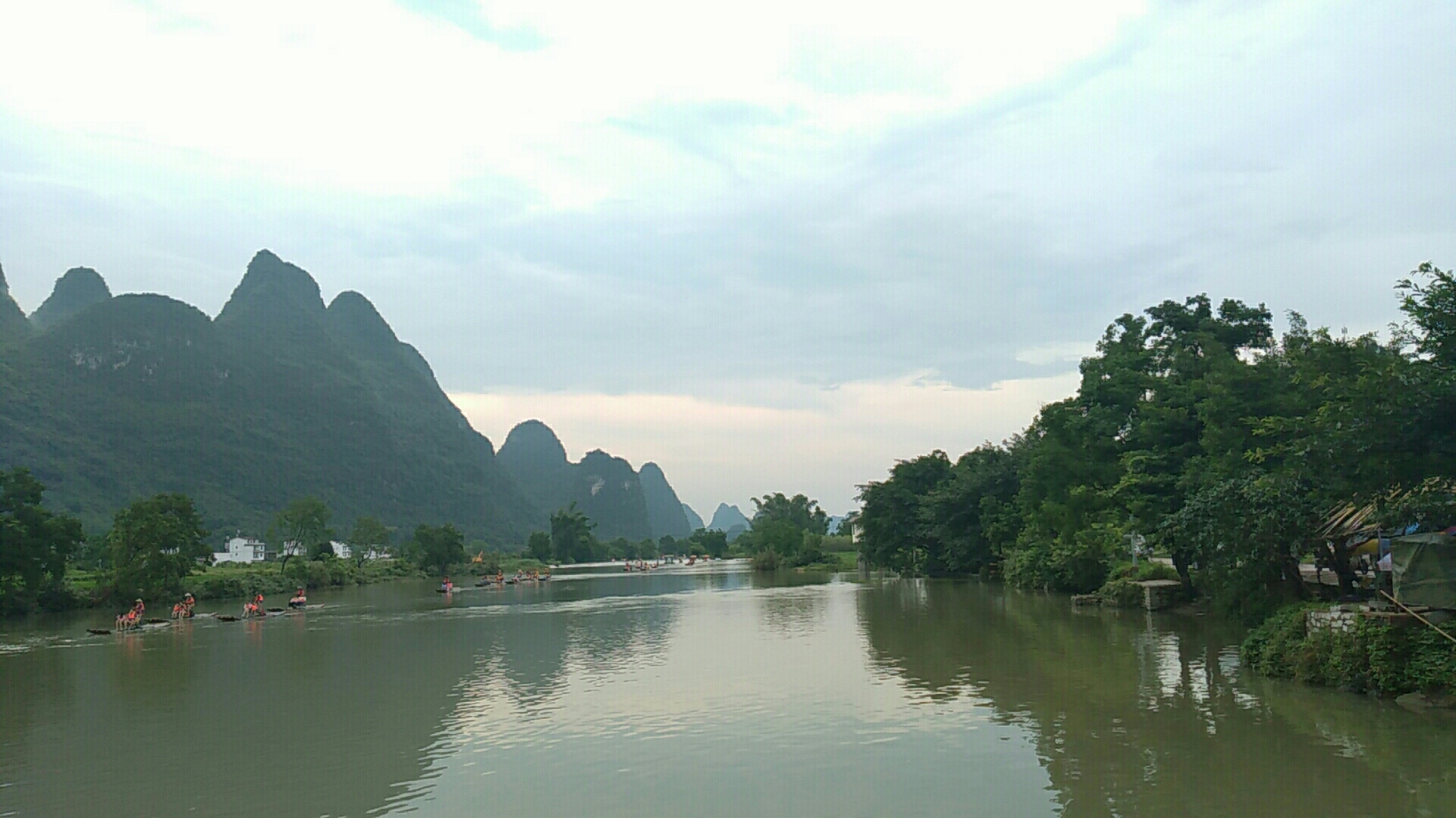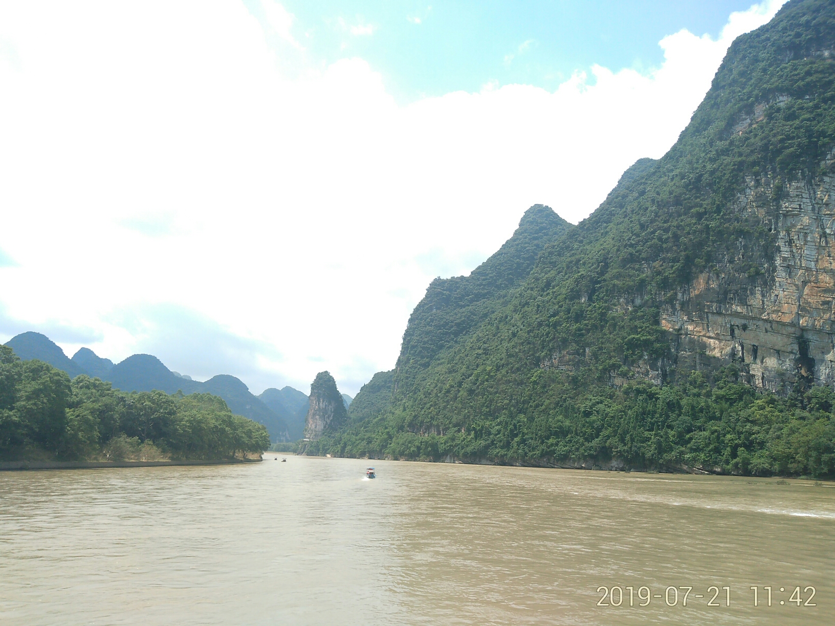 码头三四小时,好几十公里一路风景都好。船上空调开得很低,还好备了外套。甲板上风很大,很凉爽。到了码头50租个电动车往遇龙河沿遇龙河走走停停,可以体验下攀岩,值得花时间坐下竹排,景色超棒,空气也是超好,一路山清水秀。会明白 桂林 (