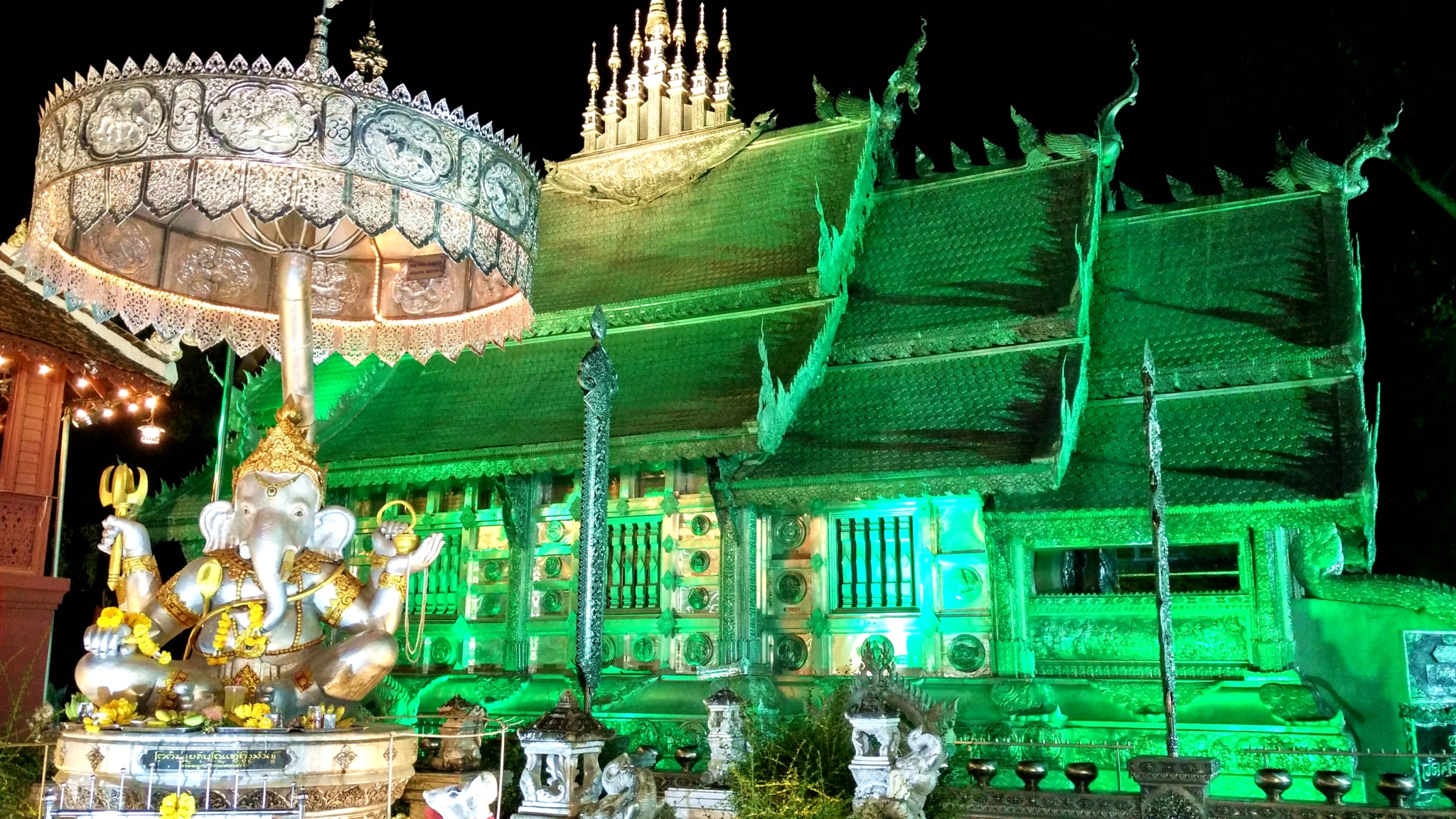 晚上的锡苏邦寺更为漂亮,戒堂会变换赤橙黄绿青蓝紫各种颜色。