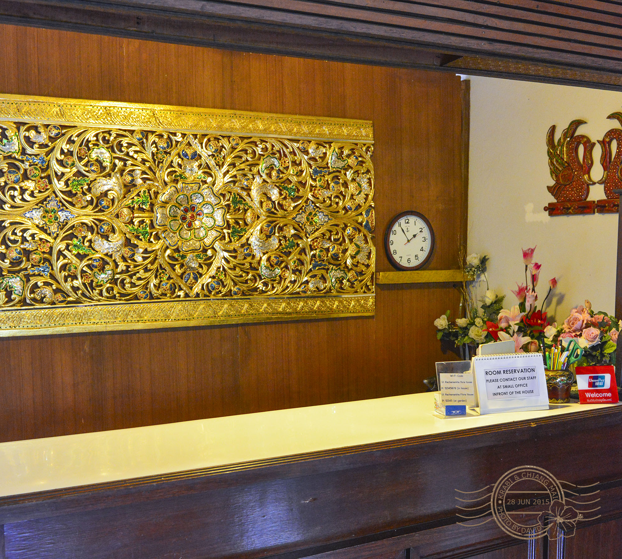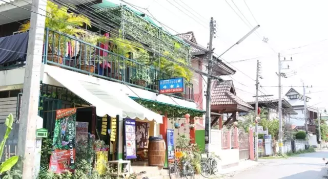 大学的中文老师,曾留学台湾国语非常好也很健谈、有爱心,她还帮我叫外卖~~旅社最大的特色就是前台管理都是中文流利的泰国美女,中文交流沟通完全不是问题。她们早上9点到晚上5点上班,其余时间大门关闭实行自助管理,可凭配发的大门钥匙自行出入~~