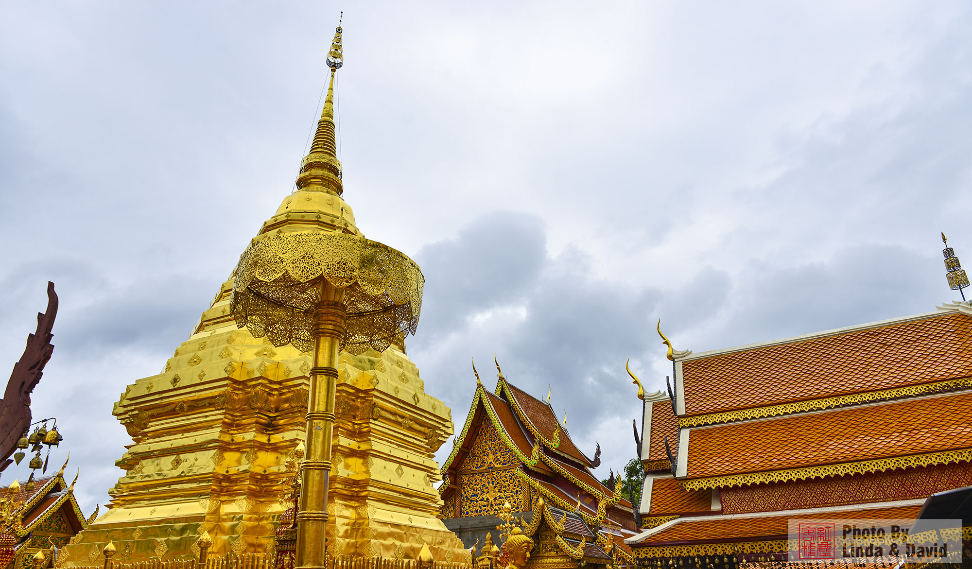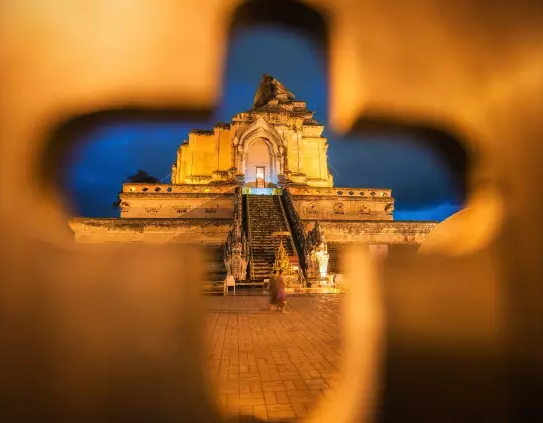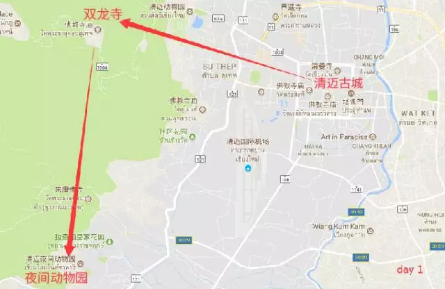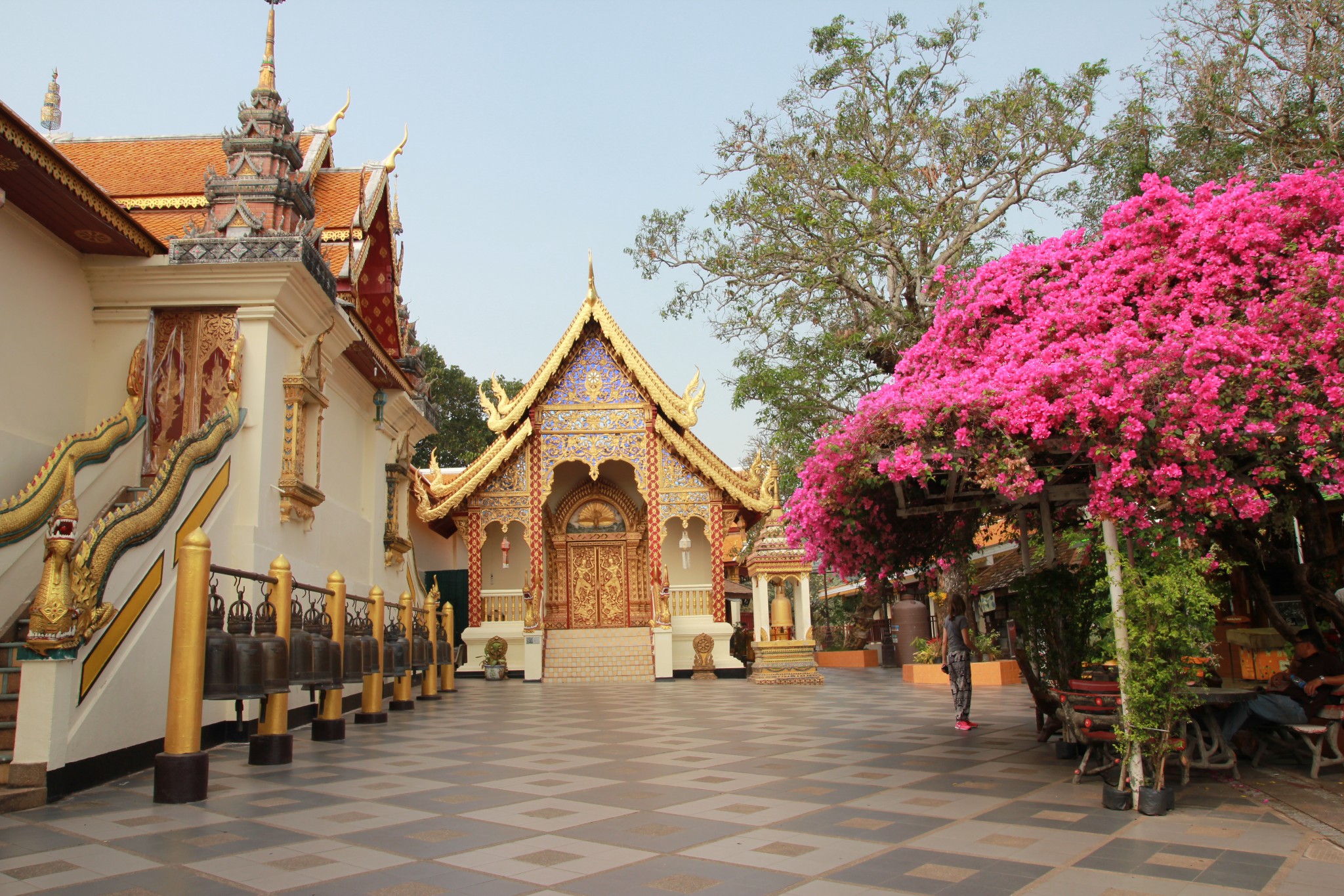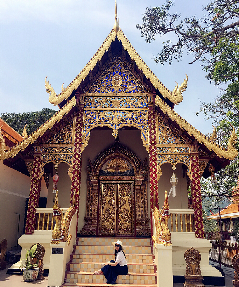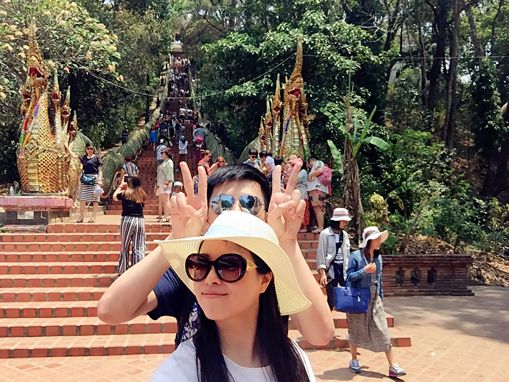 双龙寺·双龙寺又称素贴寺,因有两条长龙在两侧台阶坐卧而得名,是泰国著名的佛教避暑胜地。 ·相传14世纪泰北得到释迦牟尼佛的舍利子,一位高僧将舍利子放在白象背上,任由其寻找供奉位置,最后白象走到了素贴山这里。 ·至今佛寺的金色佛塔中仍供奉着佛祖的舍利子,每年都吸引世界各地的信徒前来朝圣。 ·在主殿后方设有观景台,在这里能俯瞰整个