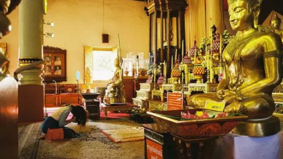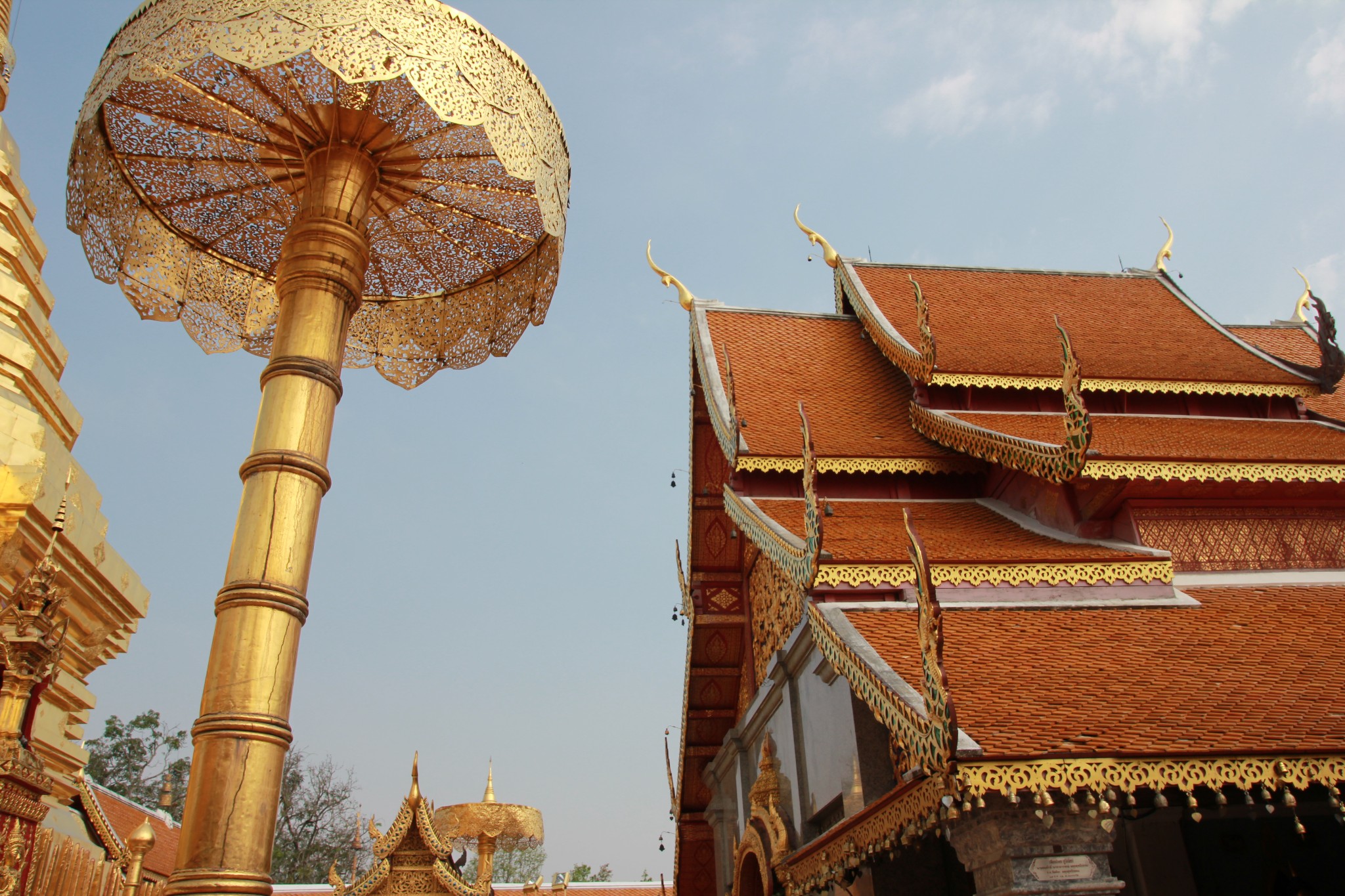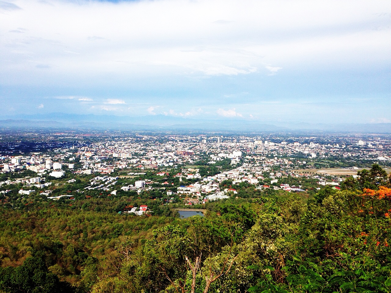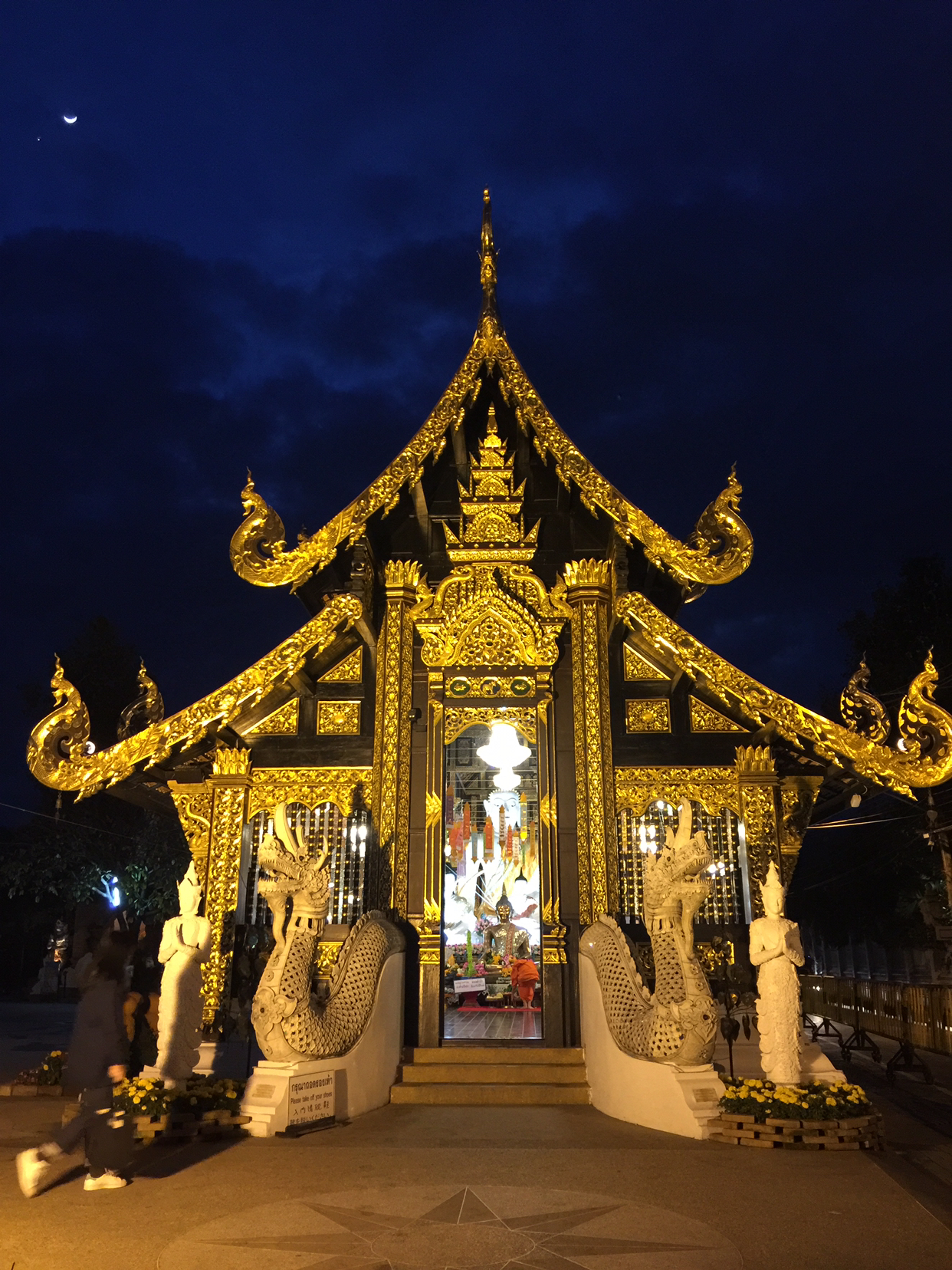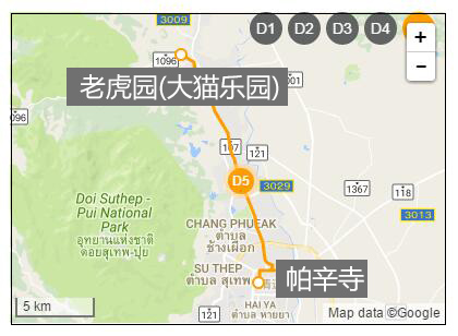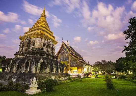 双龙寺·双龙寺又称素贴寺,因有两条长龙在两侧台阶坐卧而得名,是泰国著名的佛教避暑胜地。 ·相传14世纪泰北得到释迦牟尼佛的舍利子,一位高僧将舍利子放在白象背上,任由其寻找供奉位置,最后白象走到了素贴山这里。 ·至今佛寺的金色佛塔中仍供奉着佛祖的舍利子,每年都吸引世界各地的信徒前来朝圣。 ·在主殿后方设有观景台,在这里能俯瞰整个