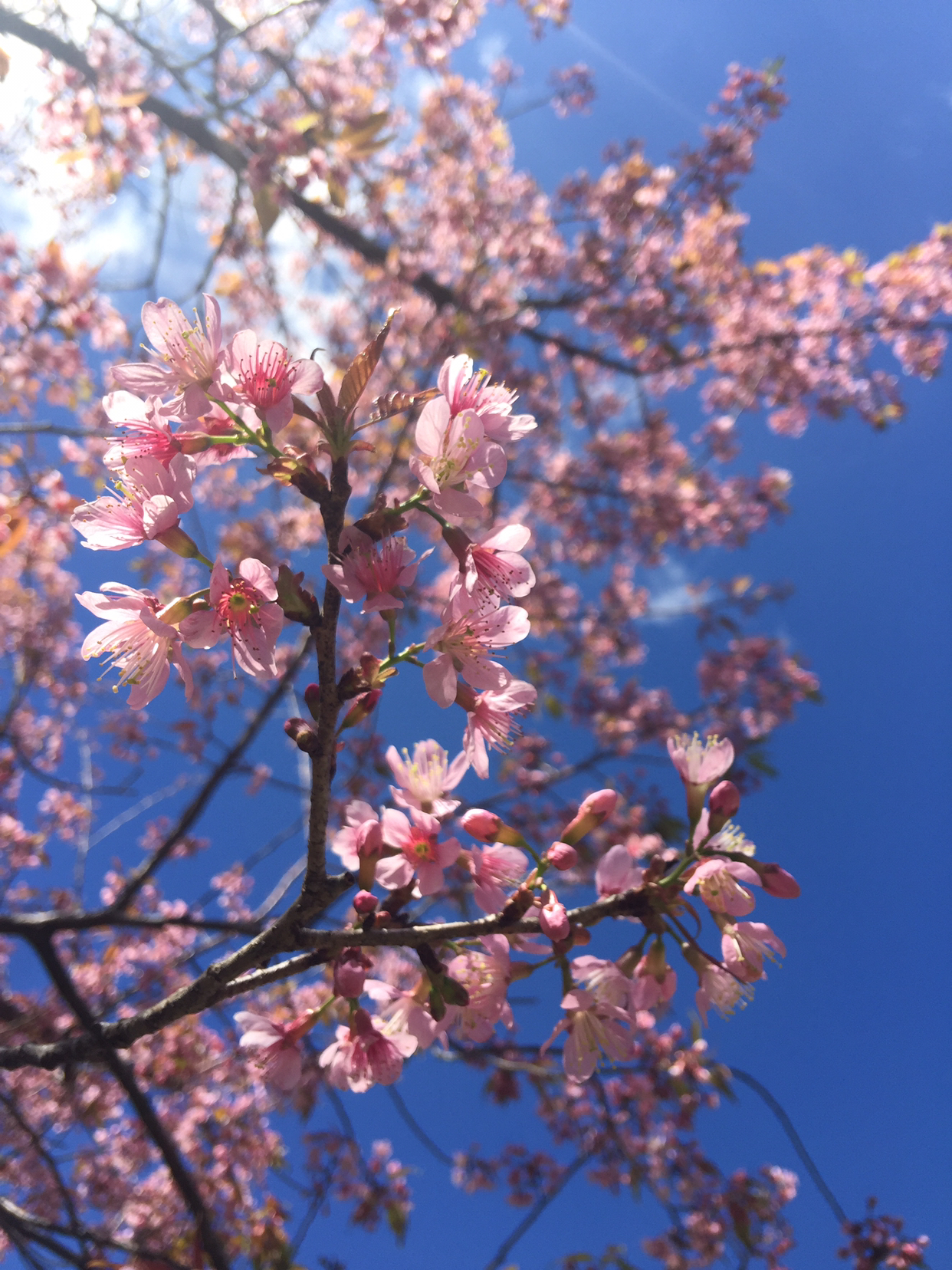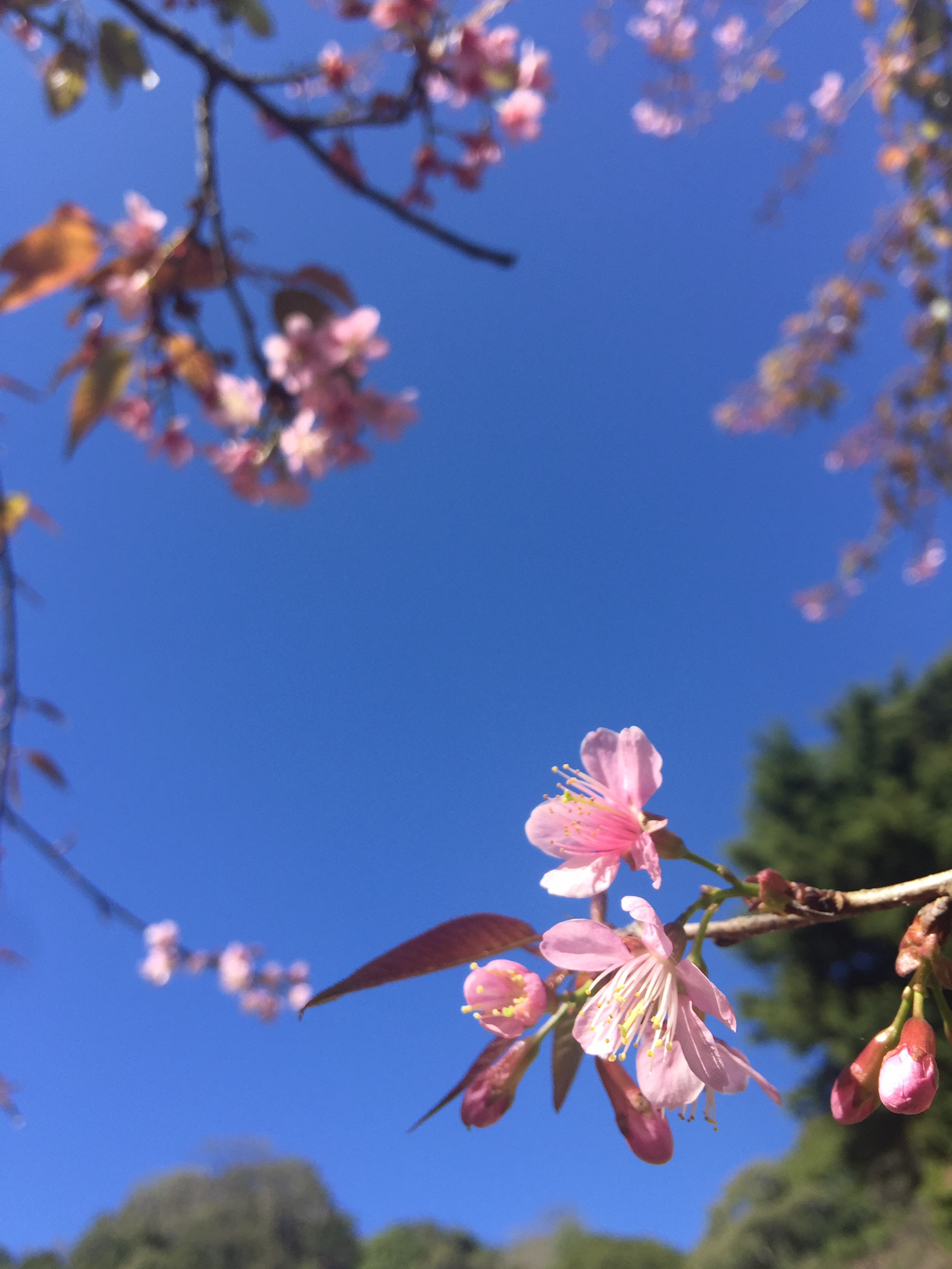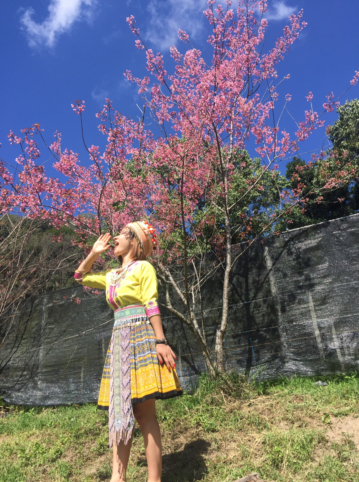 如果你是1月份来,还能再往上开到樱花谷,看冬天里的樱花盛放,还能遇见可爱美丽的苗族姑娘,穿上民族服装拍美美的照片