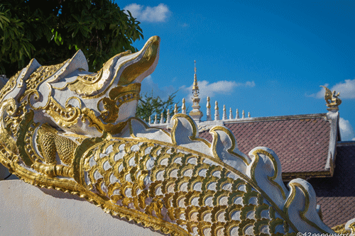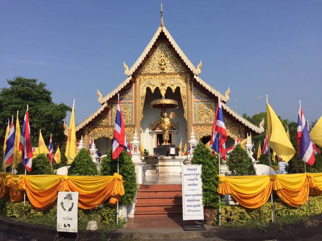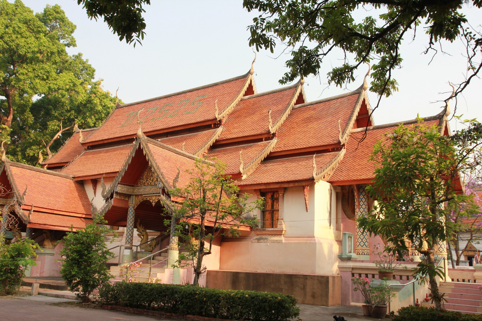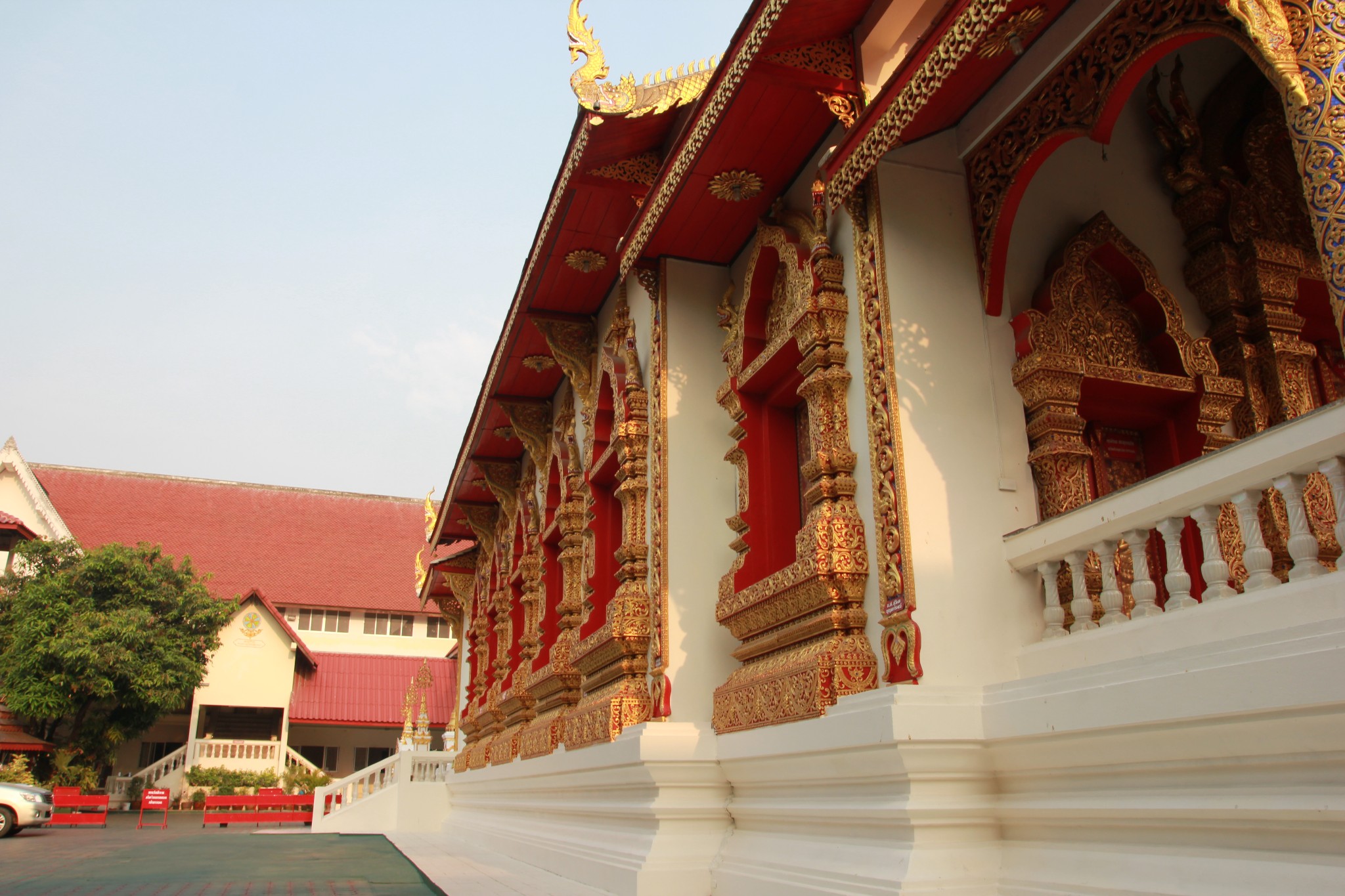等级最高的寺庙。 ·寺庙属于典型兰纳(古泰族王朝)风格建筑,由主殿、小佛殿、僧房组成,寺庙门口点缀着蛇和孔雀的装饰,进入内部能看到巨大的佛像。 ·大佛塔是寺内最古老的建筑,1545年