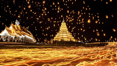 晚会开始前,我们会有一个集体祈福的仪式,这一次我们有幸请到了轰动世界的曾参与救援 泰国 洞穴被困少年的 英国 潜水员昂斯沃思(Vern Unsworth)作为特别嘉宾,与游客共同祈福。