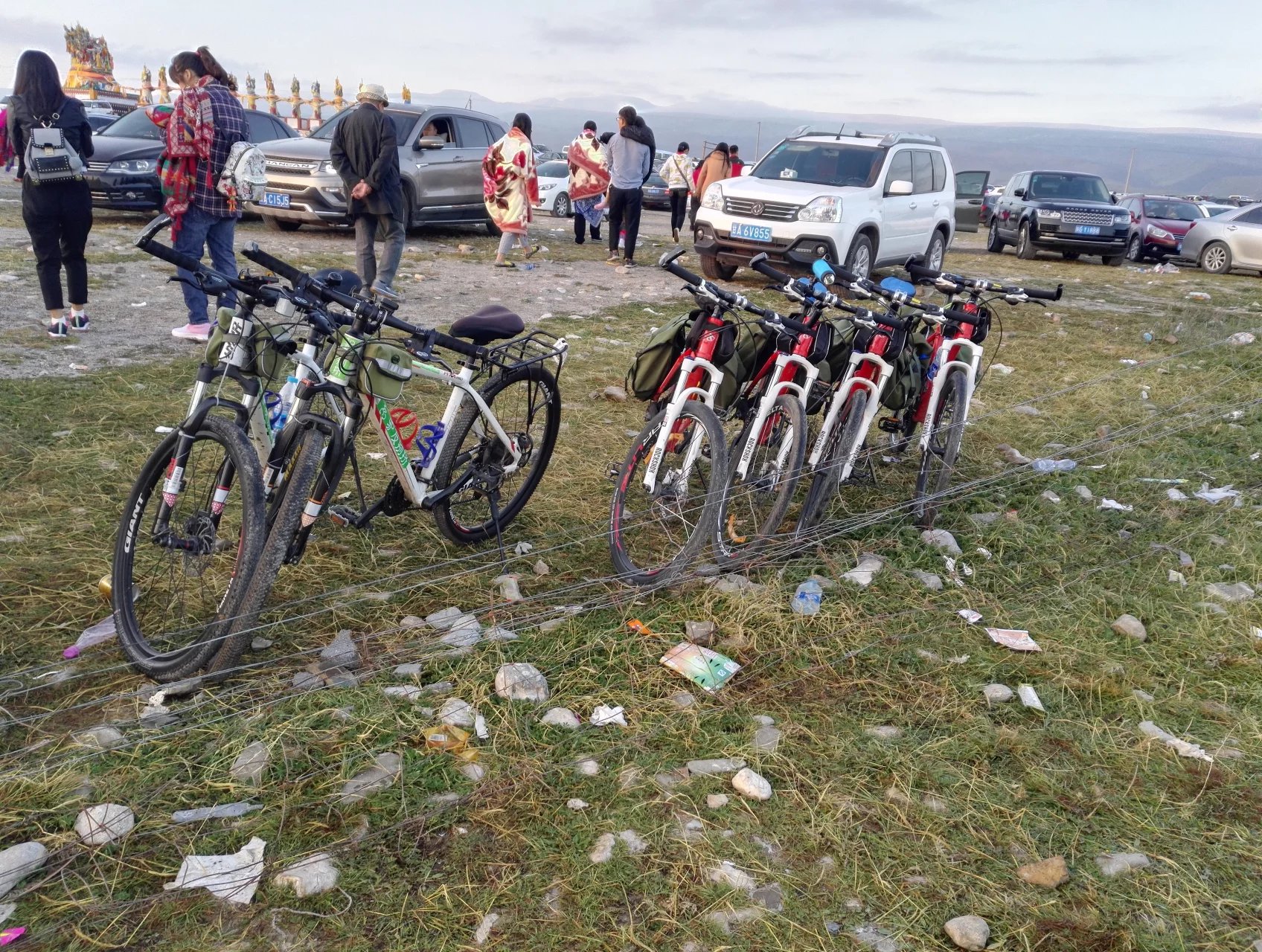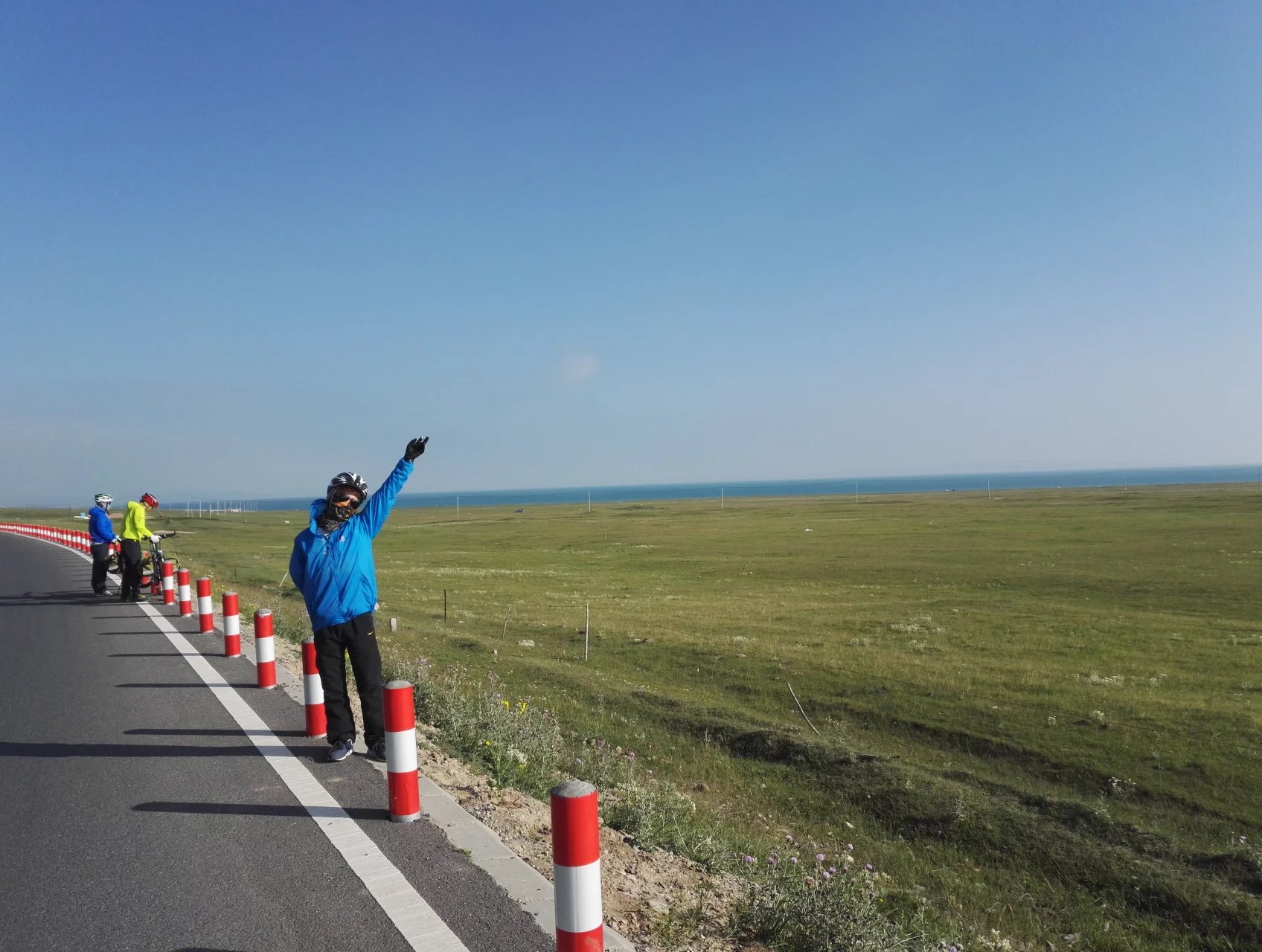 西宁站环湖第1天(8小时,90km)早上八点多点乘坐 西宁 站旁边的汽车站(就在火车站广场上)的班车( 西宁 —西海镇)去西海镇,大约九点多的时候抵达西海镇,我是提前约的租车行,到了之后打电话“驴友别挤”老板杨明哥接我的。到了西海镇之后一般车不是直接到汽车站,到了街上车就停了,那附近租车行特别多,一般离西海镇还有一二十公里的时候就会有租车服务的人上车问人,这是一种很普遍的现象特别是旺季,一般你已经约好租车服务的就不用理会那些人。杨明哥把我接到他们店里,接着我跟几个约好的伙伴见面了,放好行李,选好车子,买些吃的放驼包里(主要是水),吃饱后就准备出发了。我们合完影,当时已经接近1点了,沿着老板指的路直接走,如果不知道怎么出西海镇可以问路人。出了西海镇沿着公路骑就行,环湖路正好绕