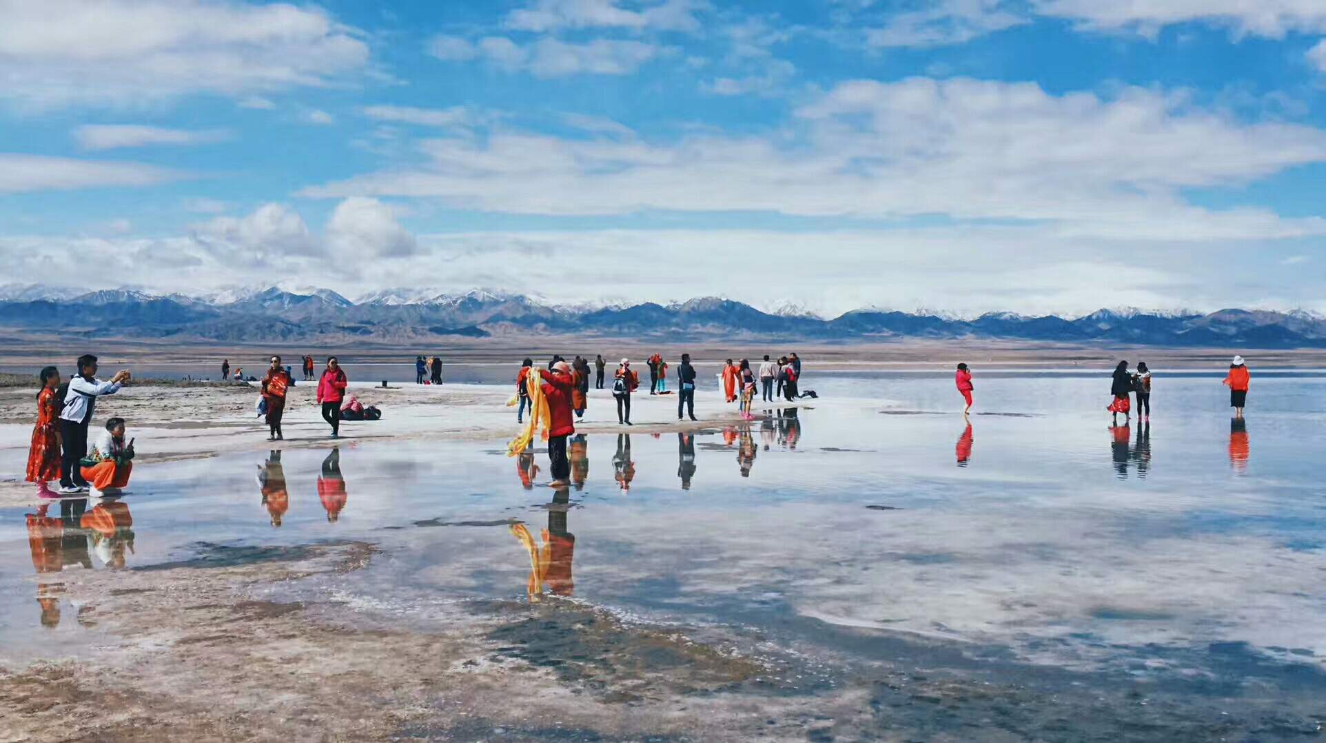环湖第2天(4小时,60km)早上六点左右就起来了,洗漱好后我们将近七点开始出发,气温有点低,穿着长袖和防晒衣骑会儿就会发热的。大概半小时,来到了十几公里外的 江西 沟, 江西 沟有个很长的街道,住宿条件和生活条件不差,我们吃了早餐买了上午需要的水就走了。路上歇息得并不多,这次遇到了许多骑行的朋友,也有徒步,也有搭车的,上午骑的这条路是109国道,到11点的时候来到了黑马河乡。来到黑马河首先要解决的就是住宿问题,镇子不大,住宿是整个环湖路上最贵的,问到一百多的小宾馆算便宜的很大可能还没房了,找了一个多小时最终在一家家庭宾馆,每人80,环境一般,可以洗澡,在整个黑马河算很便宜的。黑马河乡是看日出的地方,所以环湖的人都会选择在这住一晚,能找到一家合适住的地方比较困难,很多还不能洗澡的就很麻烦了。黑马河消费挺高,所有商品包括吃饭都接近正常价格的两倍。找到住宿后就要开始约车去茶卡盐湖,六个人拼了一辆面包车,每人50包括往返的。吃完面(面食一般都比饭便宜,所以面馆人很多,一碗只有牛肉汤的面大概20左右, 西宁 的话8块左右)后,司机师傅来接我们,茶卡盐湖距黑马河乡80公里左右,行车大概一个半小时吧,路都是公路,只是来往车太多。路上能看到很多羊群和马,山都不高,望向窗外,你总能找到美丽。(路上会看到一个橡 皮山 的标志牌,名字挺有趣)茶卡盐湖的停车场很大,但是几乎爆满,下午两点多到的,排队买票的时候人还是特别多。一般进去两小时就足够了,一波波的游客来来往往。茶卡门票50到70之间,有优惠证件貌似可以减免。司机大哥告诉我们两小时后在停车的地方集合返程,实际上到最后我们也记不清车牌号了,停车场好几个区都找迷糊了,所以下车后记好车牌和停车区域。茶卡盐湖原来是座盐场,里面许多盐雕,脱鞋可下水,盐湖十分美丽,脚受伤的可以准备鞋套,磨出水泡的脚光着在上面走非常痛苦(切身经历,深有体会)。景区内有观赏的小火车,也有拉人的车,都需要另行买票,进去之后有专门的地方售票。玩完后也差不多四点多了,还没出景区就开始下雨了,淋着雨出来的,很幸运雨下得晚而且刚开始天气很好,高原的雨说来就来,去得也快。坐车回到黑马河洗澡洗衣服啥的,吃饭买点零食然后就是睡觉啦。