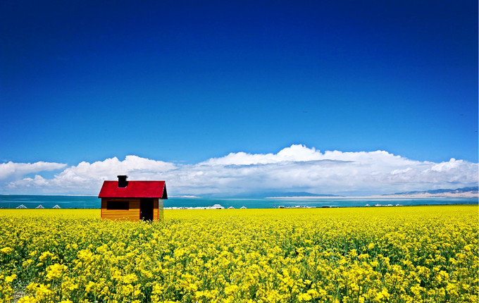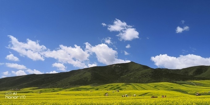 推荐理由:7月的油菜花搭配 西北 的辽阔及原生态,犹如一片金黄色的海洋。