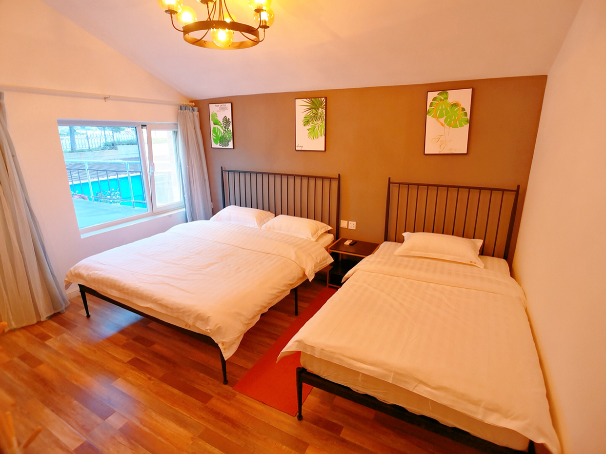 一楼还配备KTV包厢。欧式小清新风格的装修,配备舒适的大床和床垫,相信您一定会舒舒服服的睡个好觉!除此之外卧室还有空调、衣架、挂墙液晶电视、免费百兆wifi、以及独立的卫生间哦(24小时热水是妥妥的)!如果您想做饭,厨具调料齐备,快来大展厨艺吧!近万平米的沙滩,有您私人尽享。可玩ATV越野,也可沙滩帐篷宿营,和朋友在沙滩尽情享受篝火晚会的乐趣!