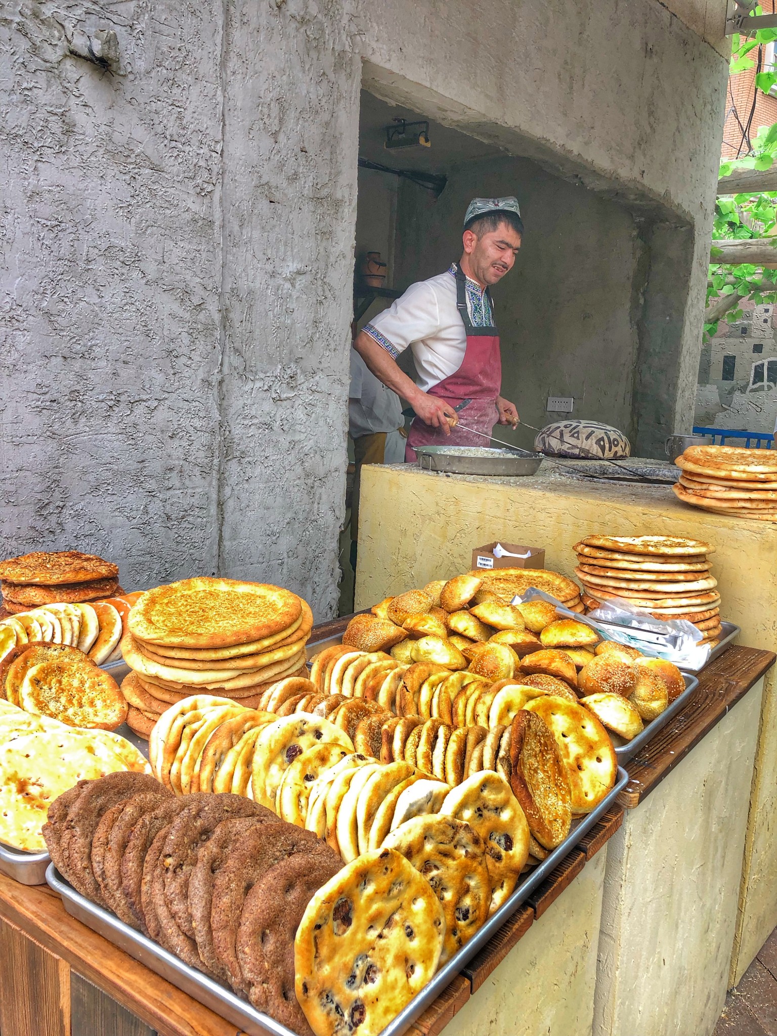 新疆国际大巴扎唯一吸引我的是各种馕。这是 新疆 最受欢迎的主食,在我看来工艺比味道更重要。5块钱一个,带两个比脸大的囊放车上,随时解决全家的饥寒交迫。