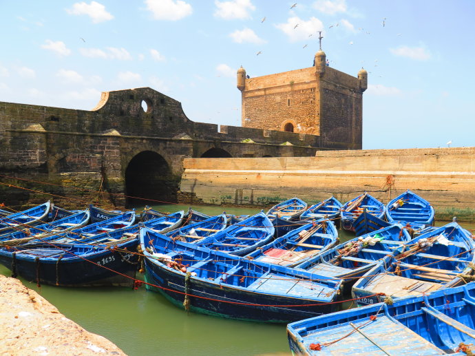 提起索维拉,人们第一反应是《权力的游戏》 ,龙母吸纳无垢军队的奴隶湾。但她也是摩洛哥最迷人的古港,嬉皮士的最后一个乌托邦。故事外的索维拉,俨然一幅中世纪光阴油画。蓝渔船,白房子,金沙滩。夕阳以极细腻的笔触,为城堡刷上一层又一层暗影。挥之不去的迷幻色调笼罩着她。这个以复古、艺术出名的城市,远古是罗马掌心的紫珍珠,近代是摩洛哥的商贸要港,嬉皮天堂。如今繁华落尽见真淳。