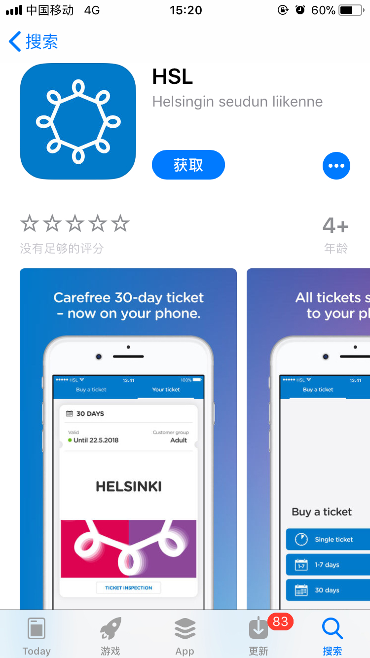 直接用手机app即可。下载一个HSL,就是下面这个单次、多日、月票都可以买。通过信用卡来付款。只要上车前买好了票,就可以出示在有效期内的票。而且你可以同时买几张,同行的人就不用另外买了。因为一张有效期内的票可以坐无数次,所以很多时候司机并不需要你出示车票。这是一个自律的城市。另外科普一下就...显示全部