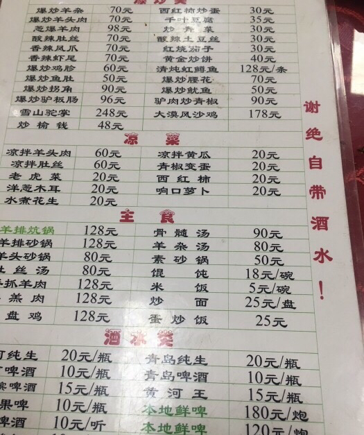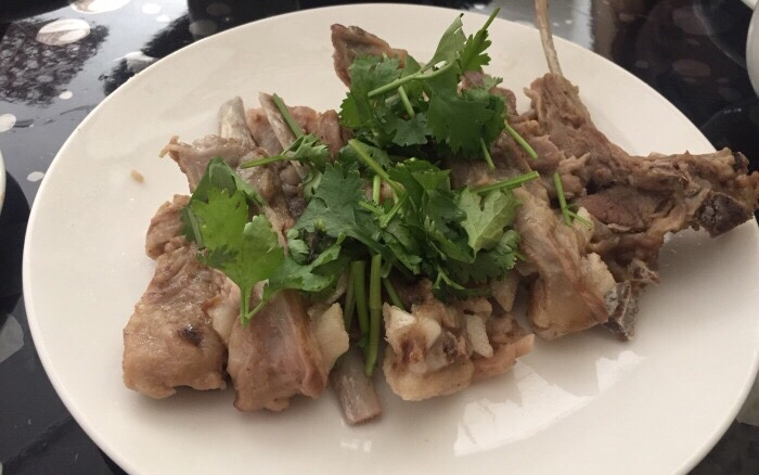 一共花费180,四个人,两个大菜,两个清炒,有大餐的感觉哦,哈哈,白条是羊排做的,肋骨连着肉,所以肉质细嫩,筋道而糯软,真是神奇,老板告诉我们,羊全都是他亲自选,几个月大的小羊,才可以有这样好的口感和味道,还有一个主菜红焖,肉质鲜嫩入味,口味香酥,肥而不腻,据老板说选百余种天然香料与中药材,用西北传统方式悉心烹饪的,真是让我浮想联翩,是不是祖祖辈辈放羊,做羊肉,所以做出这么美味的食物。觉得这家店,蜂友们一定不可以错过。