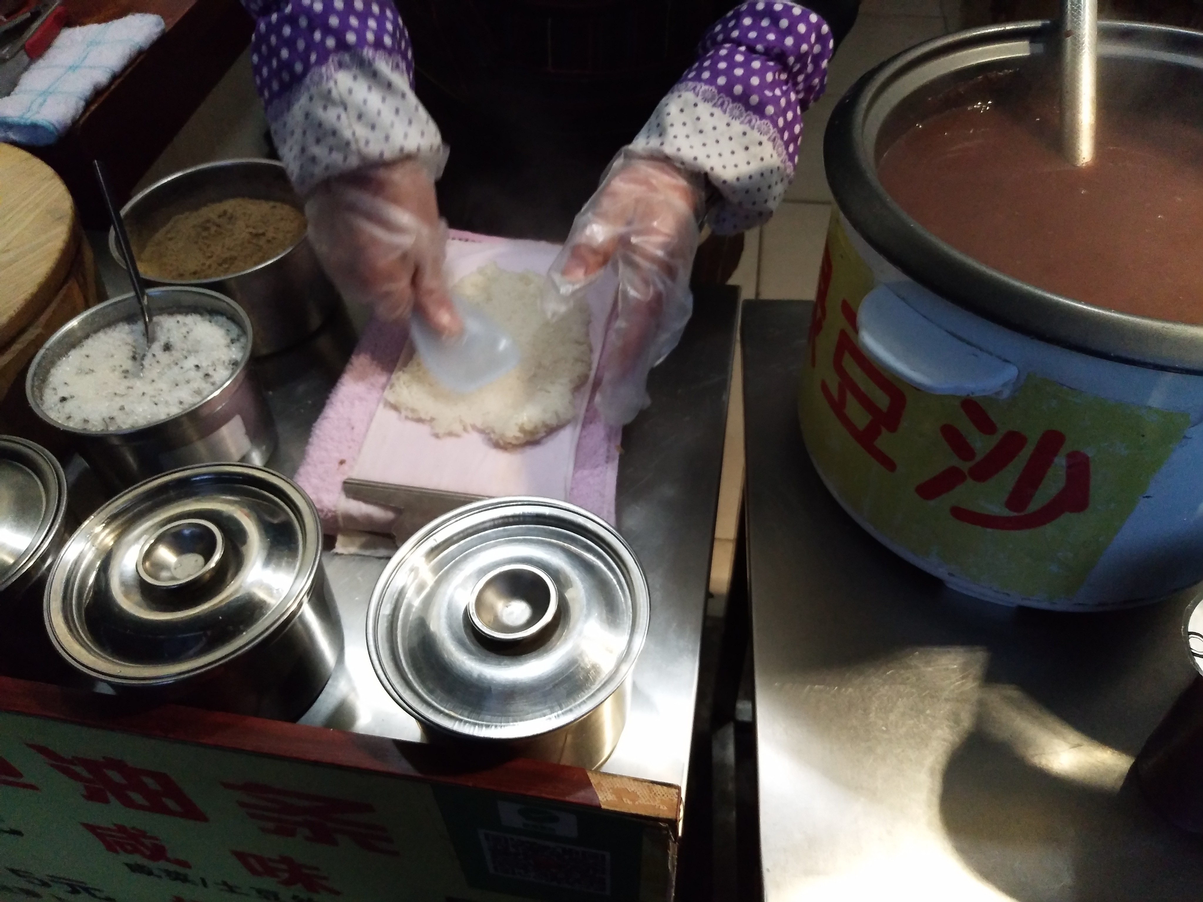 比如上图的糯米包油条,和红豆沙、绿豆沙,甜甜的,都不错,不一定非得要奔着哪个网红