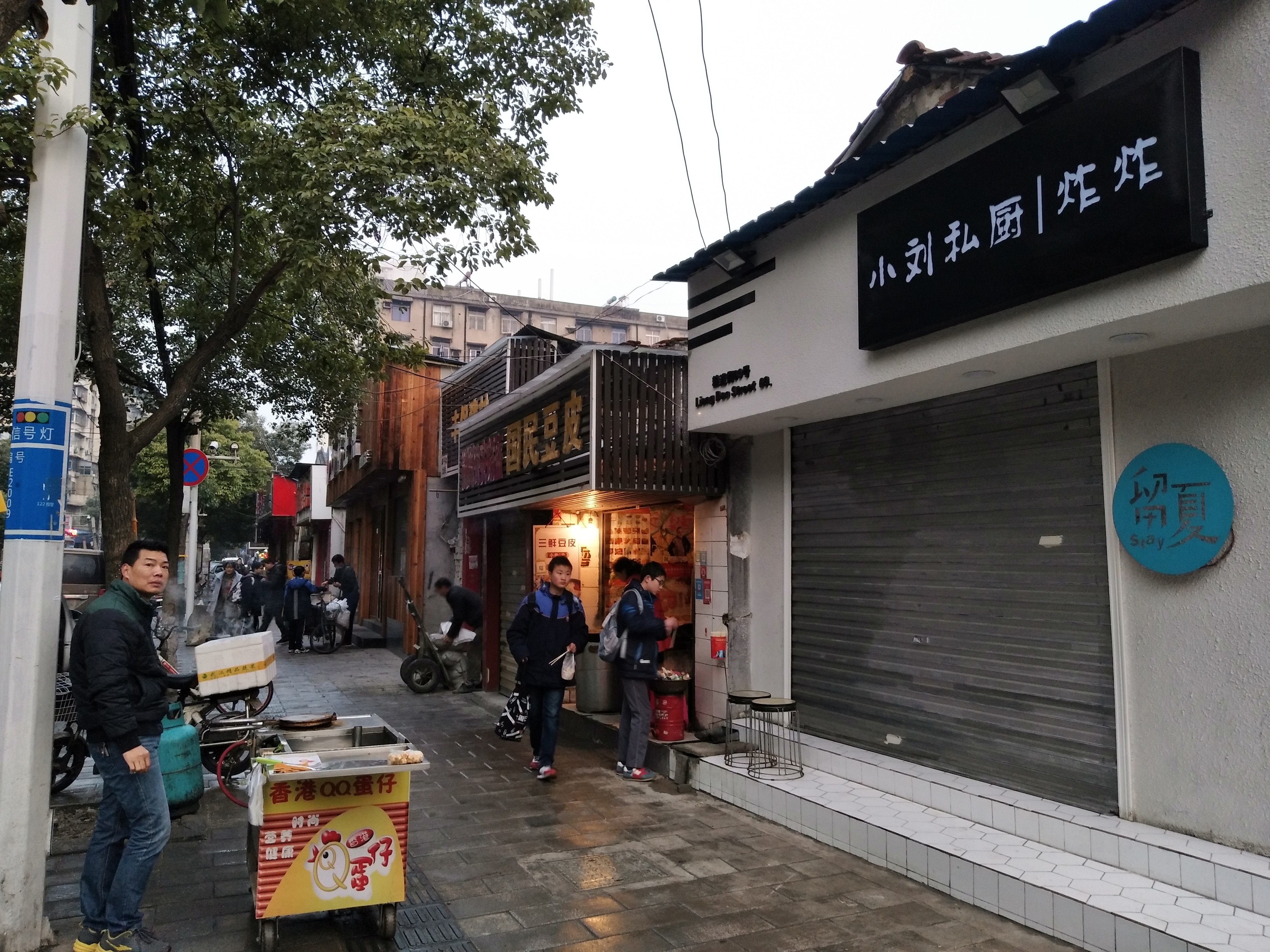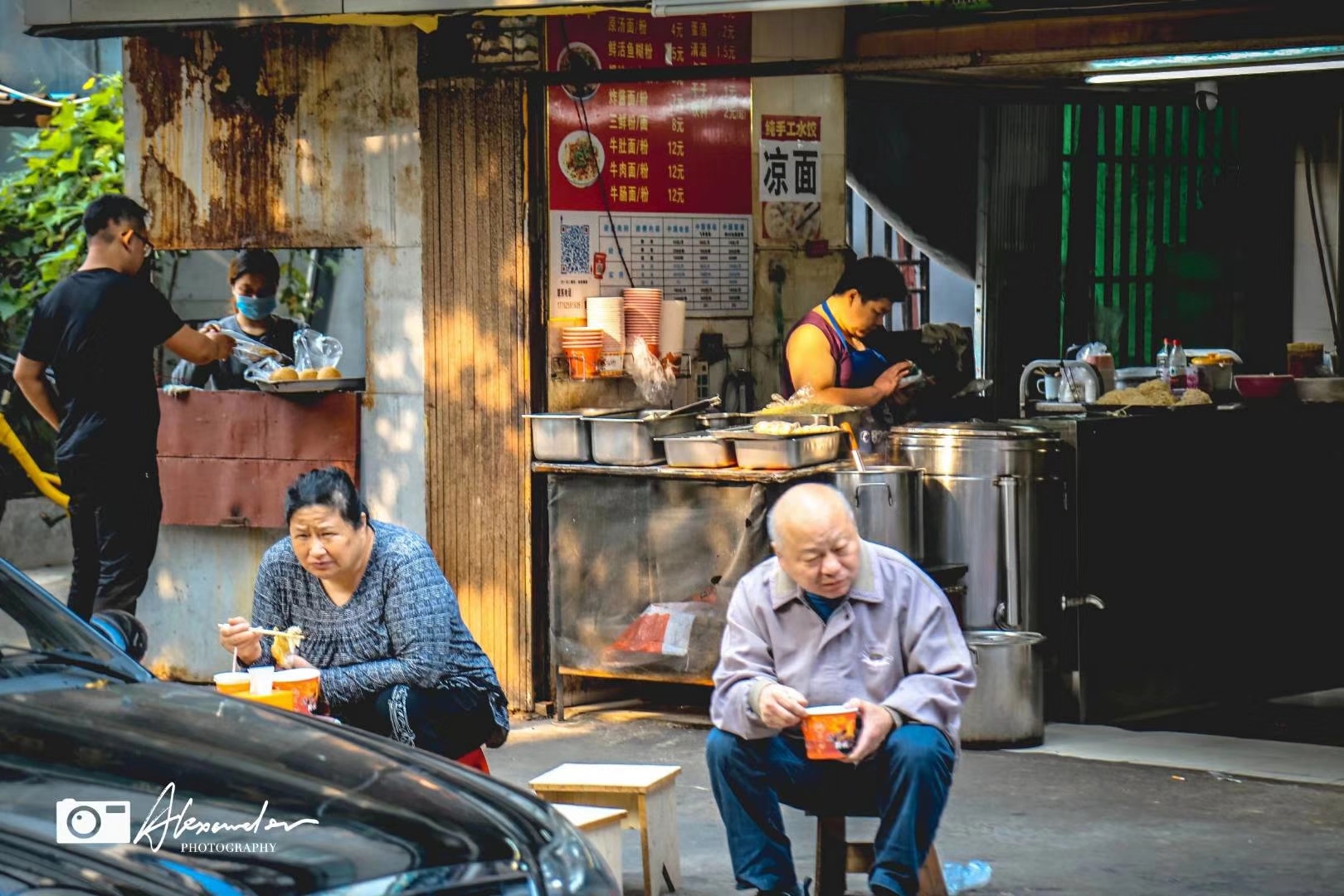 由于这条街学校多,你可以随时看到学生在不同的小店买小吃过早。