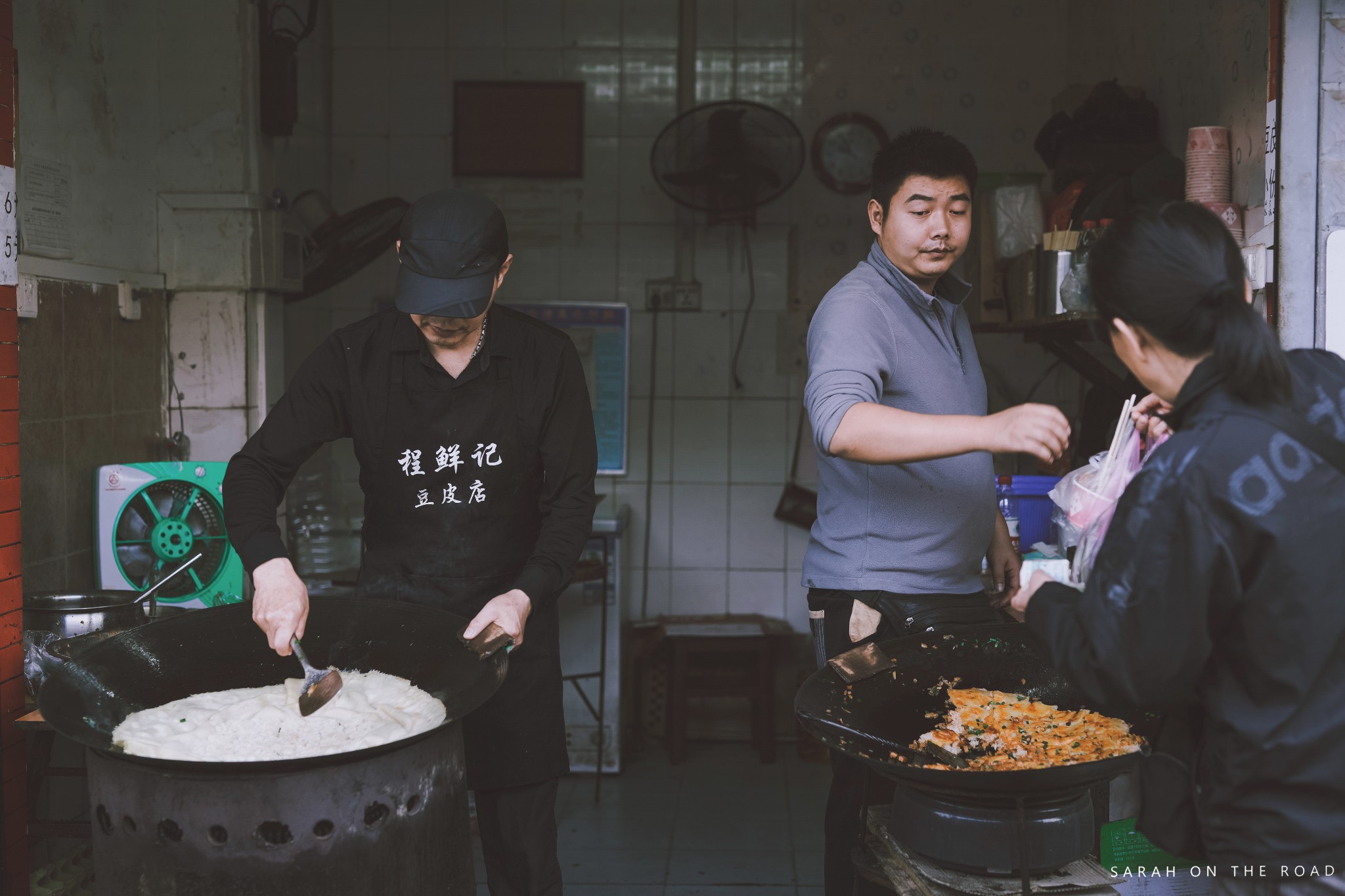 最有名的就是这个“阿斌三鲜豆皮”,排着队买。