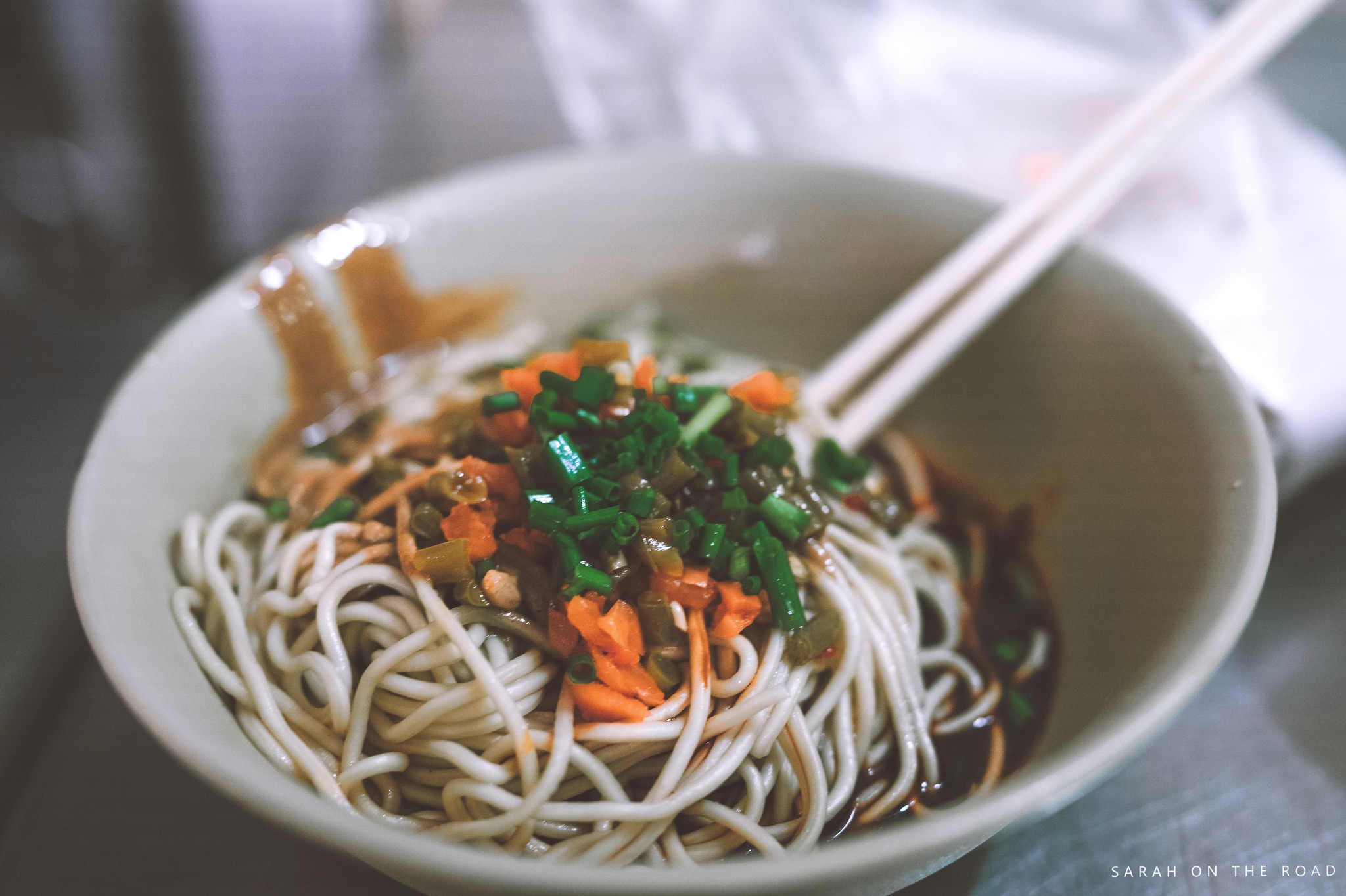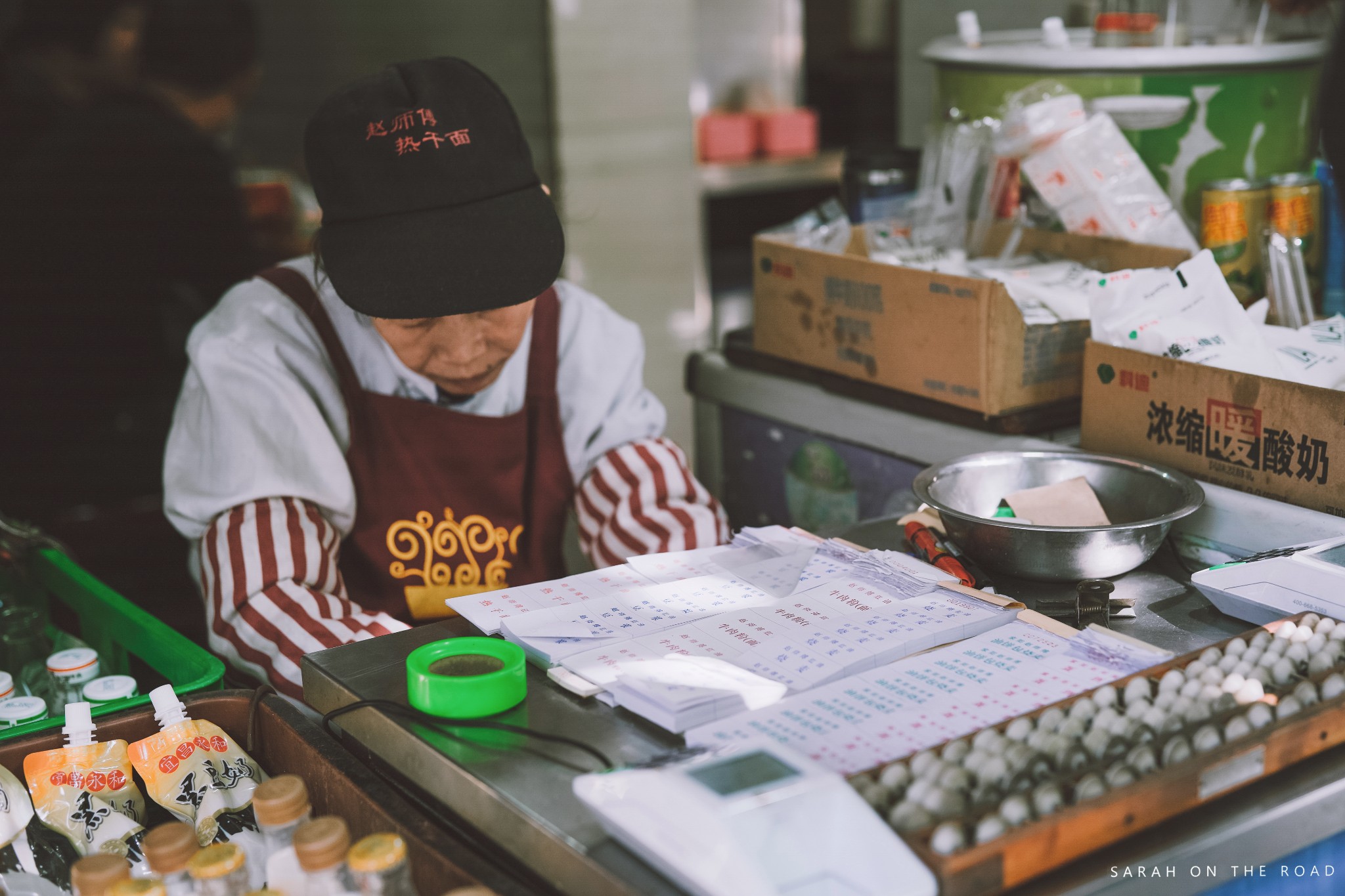 把面票给旁边的阿姨,阿姨熟练的取面下面捞面 ,我就按了几张照片的功夫,就煮完了,另一个阿姨哐哐哐打着调料,小勺子在调料里快速翻腾,对我说吃多少辣自己加,据说辣椒很辣,我只敢放一点点,这家的辣油也是口碑爆棚的。