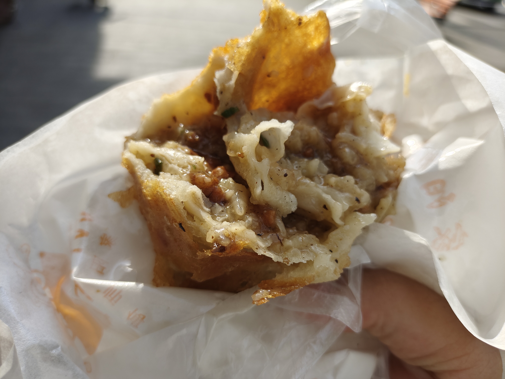 葱油饼薄厚实度,一口咬下去满是葱油香,三元一张饼,性价比还不错,吃着吃着竟然还有肉糜,这性价比,关键是实在太好吃了,王记我记住你了。