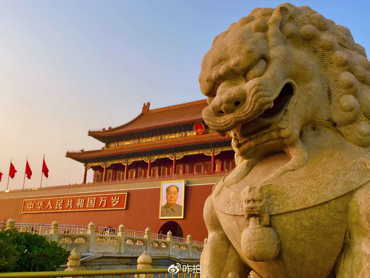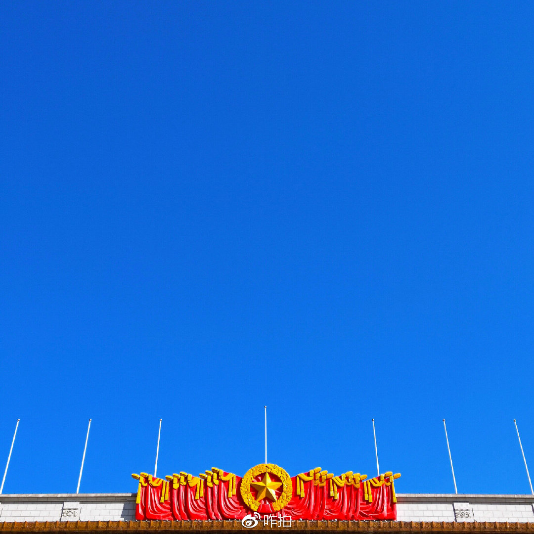 Ps:旗杆可不要挡住毛爷爷的头像哦,拍的时候可以稍微倾斜一下手机的角度。