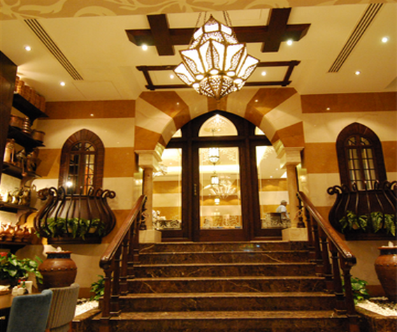 塔(哈利法塔)124层最高观景台下两层。可以一边用餐一边欣赏水柱随音乐曼妙地舞动,因为俯瞰窗外,大名鼎鼎的音乐喷泉就可以尽收眼底。餐厅牢牢的占据着吉尼斯最高餐厅的记录。但是高大上的环境,价格自然会有点小贵。