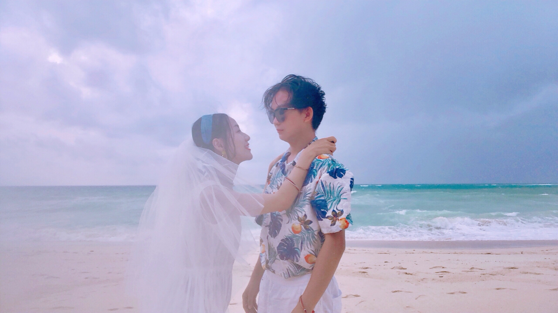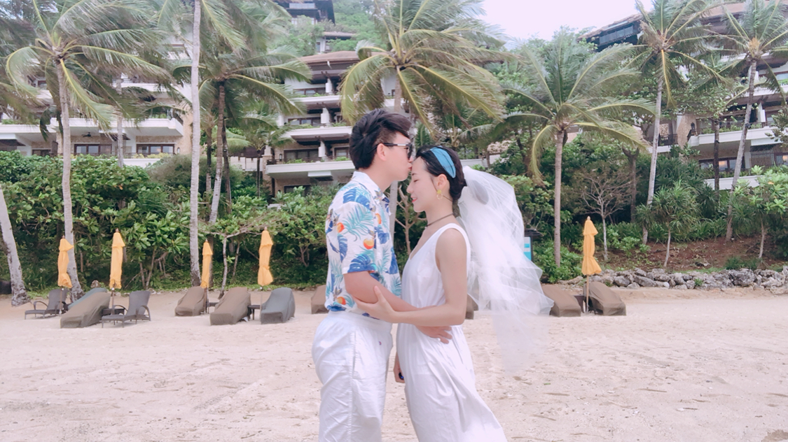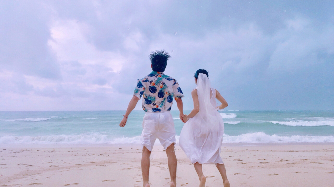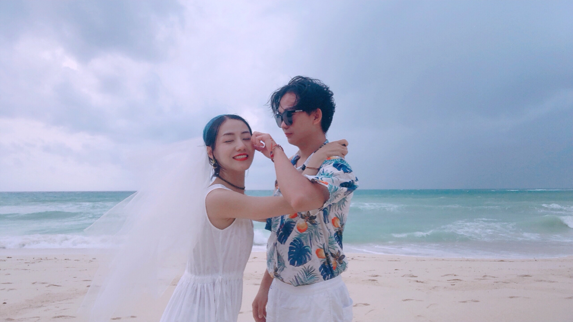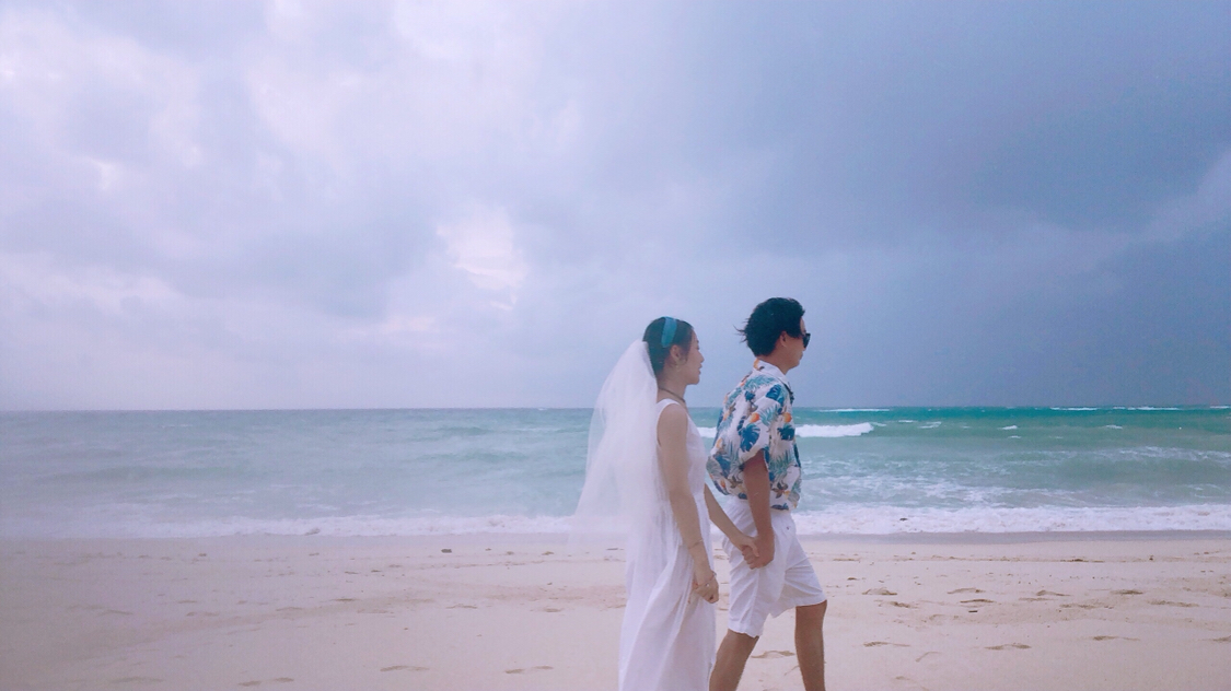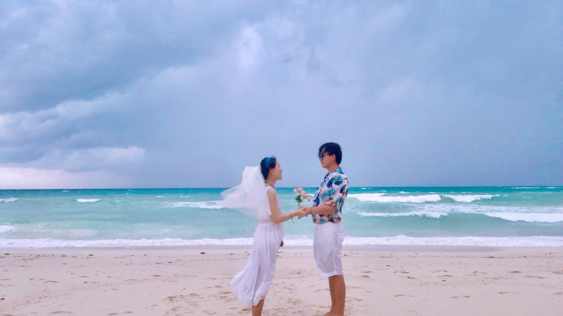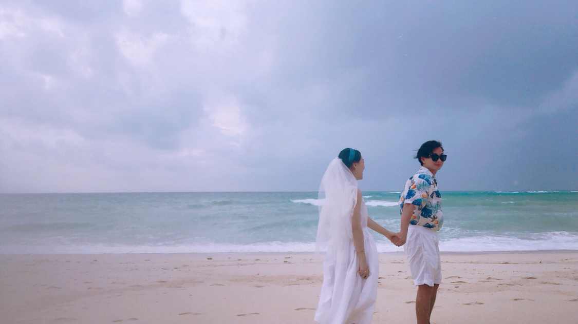 出发之前自己买了头纱,刚好是我们一周年,就当是一个小小的仪式,配上蓝蓝的海,感觉很浪漫了~