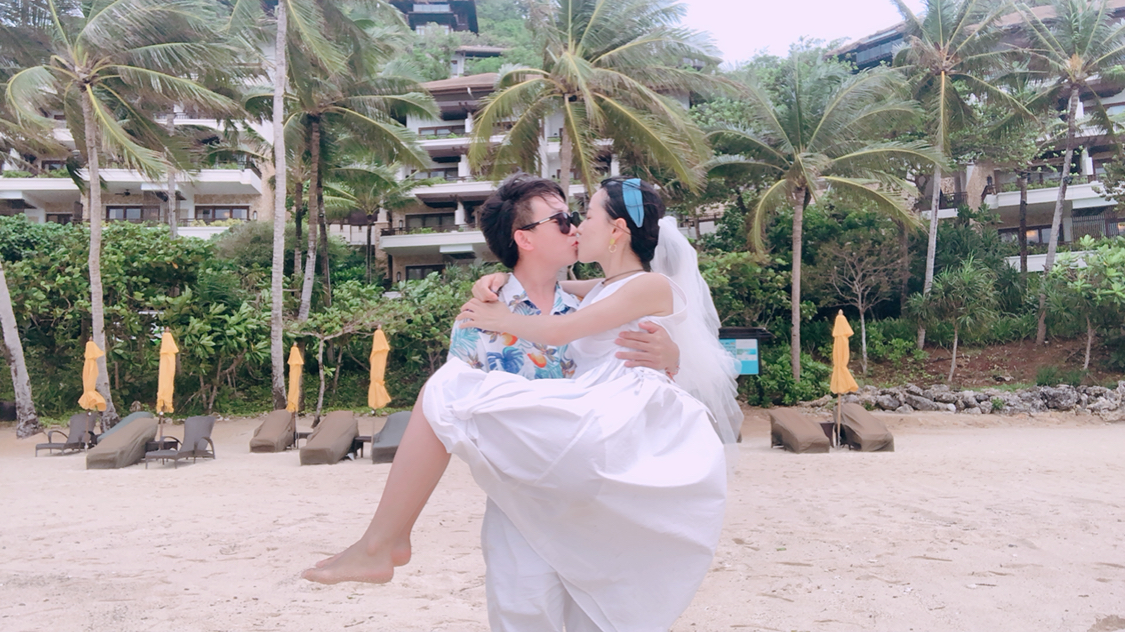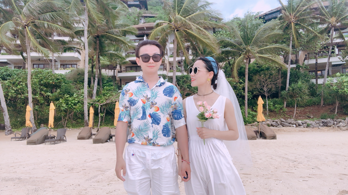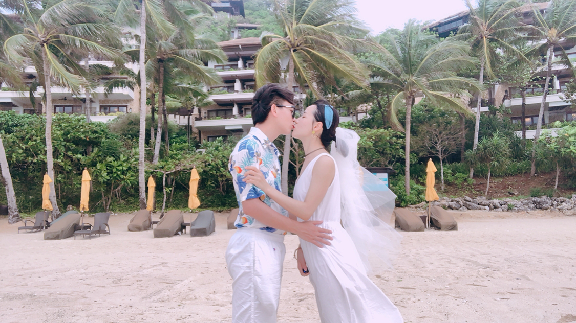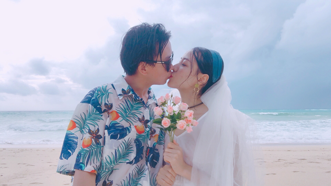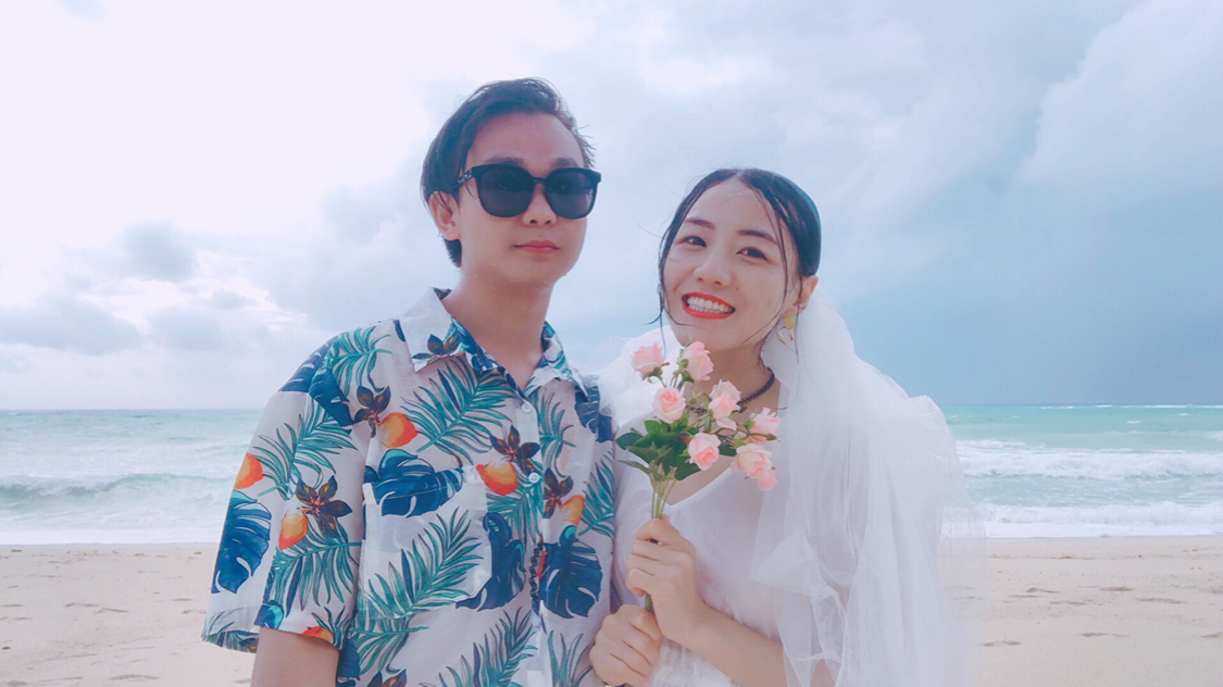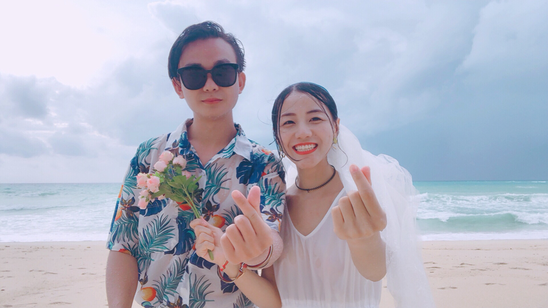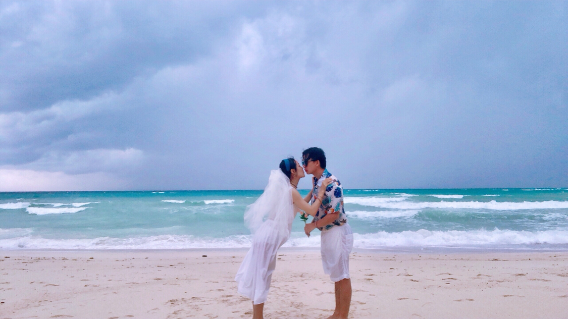 出发之前自己买了头纱,刚好是我们一周年,就当是一个小小的仪式,配上蓝蓝的海,感觉很浪漫了~