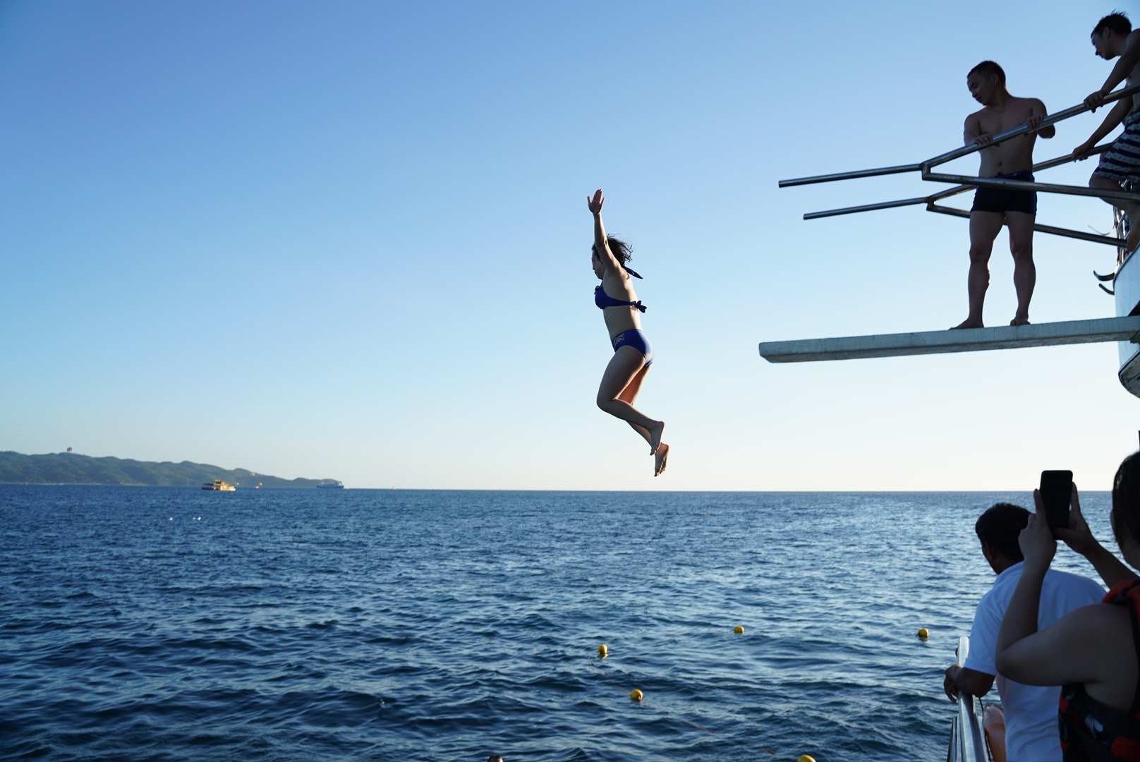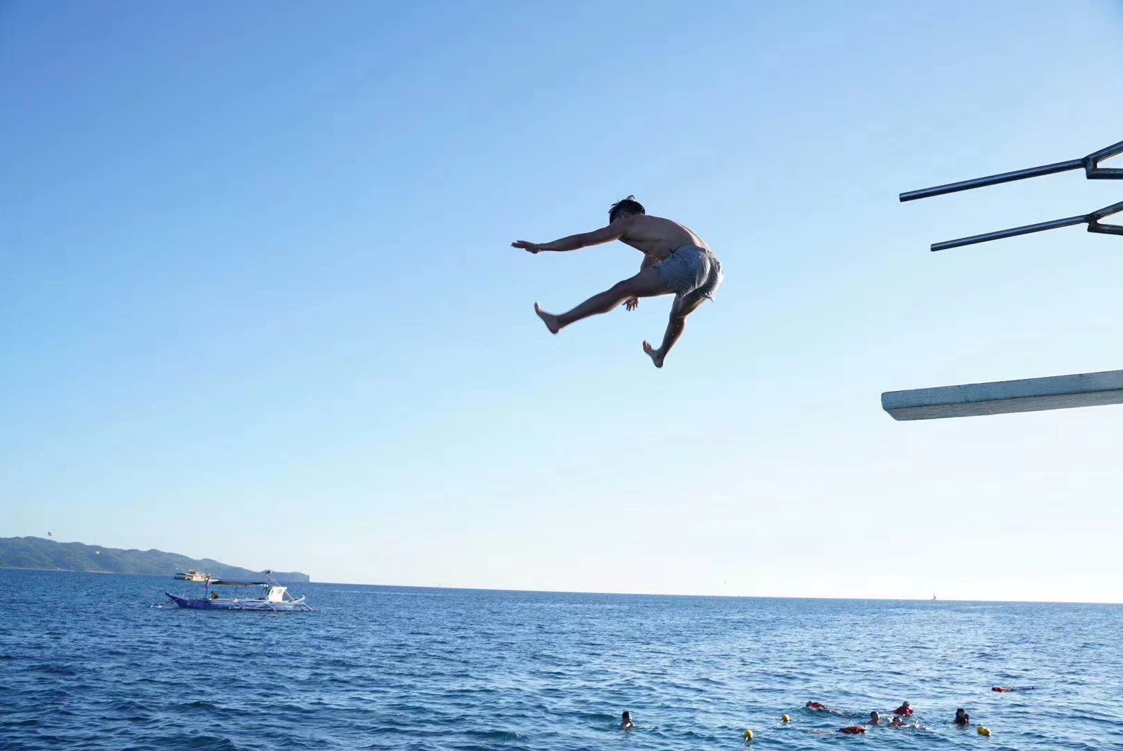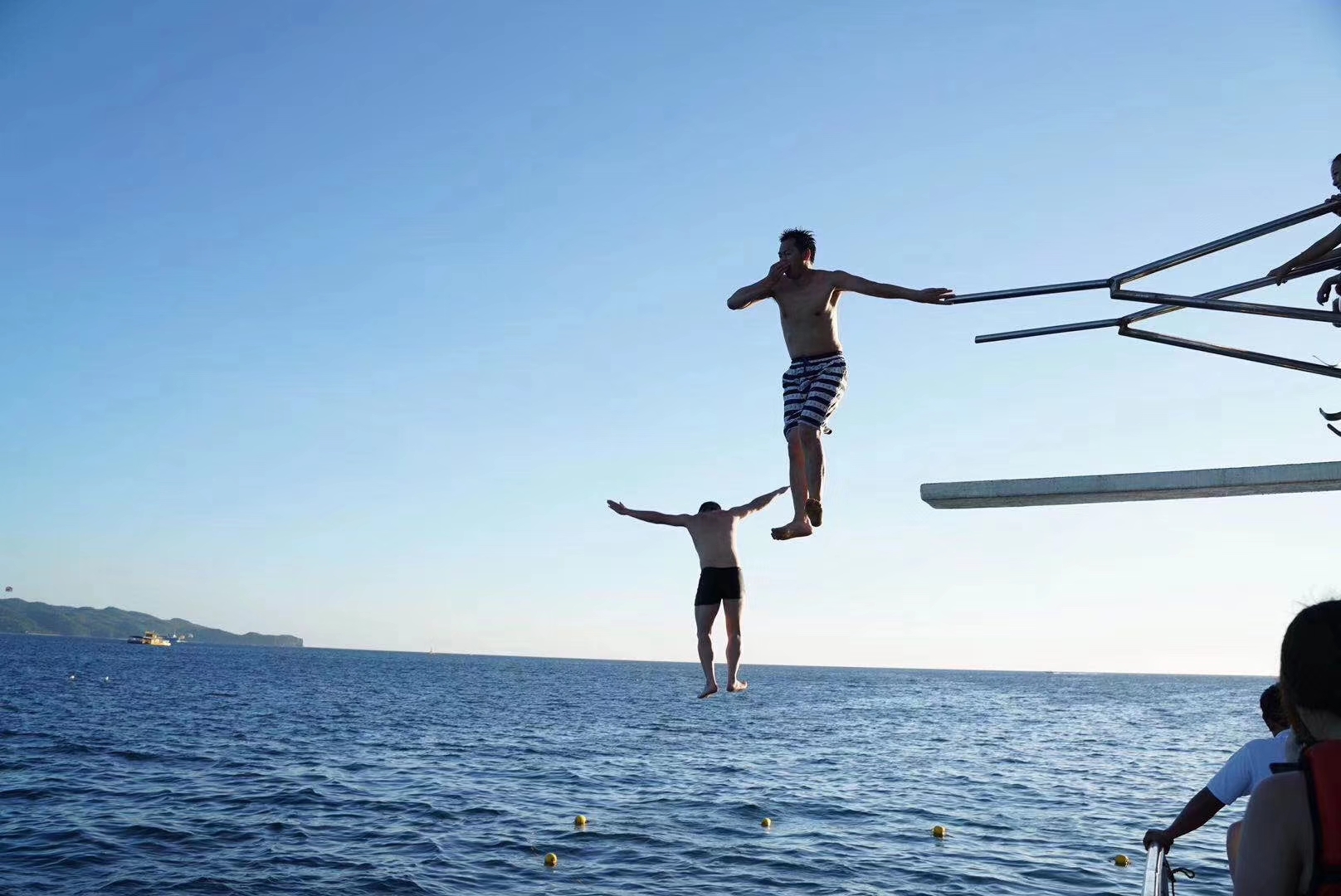 菲律宾的跳岛不推荐!没有泰国的好,浮潜海水浑浊基本没啥可看的。但魔幻岛跳水还有点挑战,有1到7米可以挑战,说实话到跳板前站着还是挺吓人的!但是眼睛一闭就下去,很刺激!我们两个人一起跳了2米,一定记得要捏鼻子合上嘴巴,不然容易呛水。
