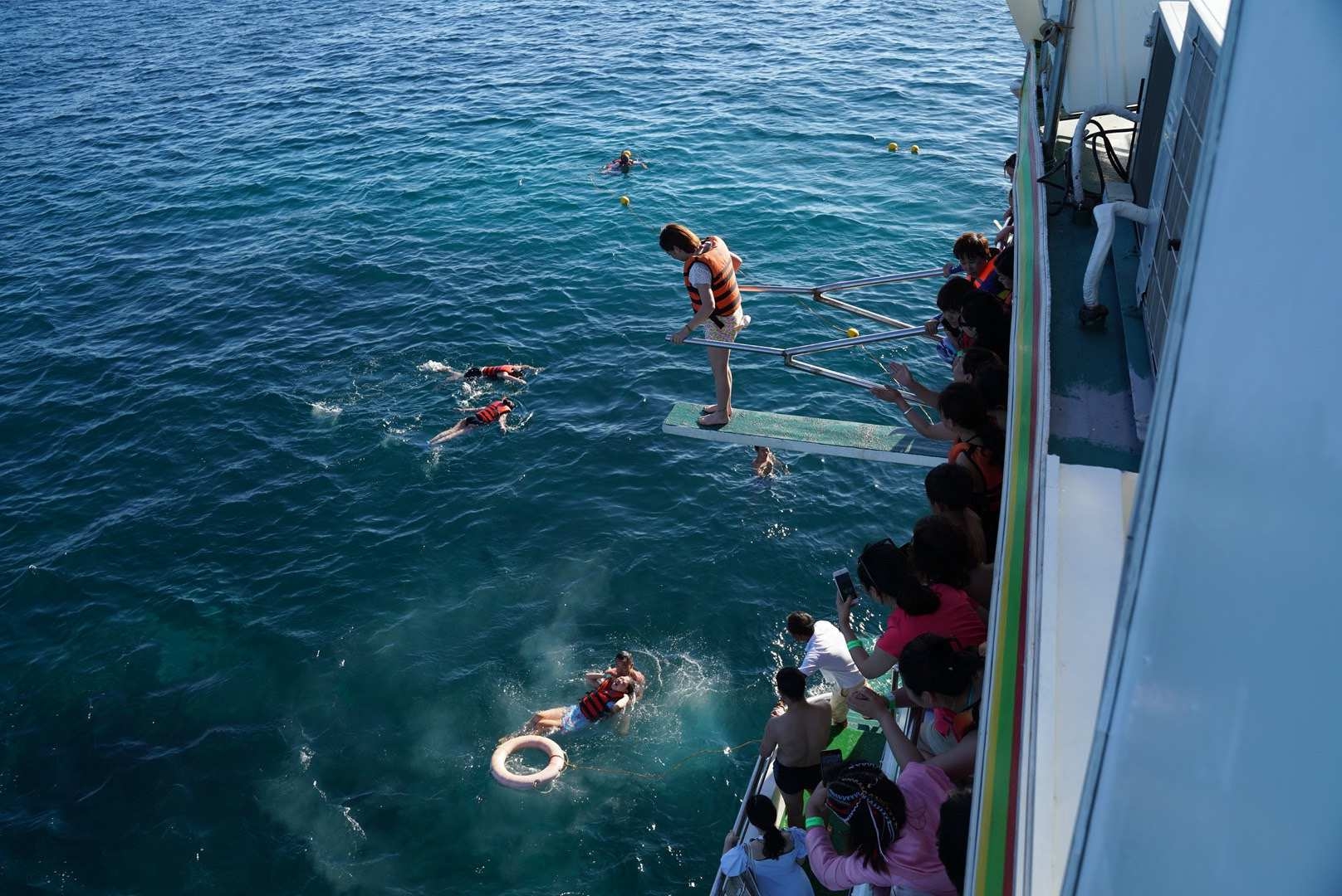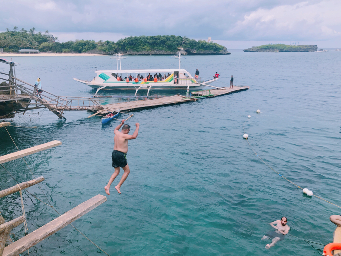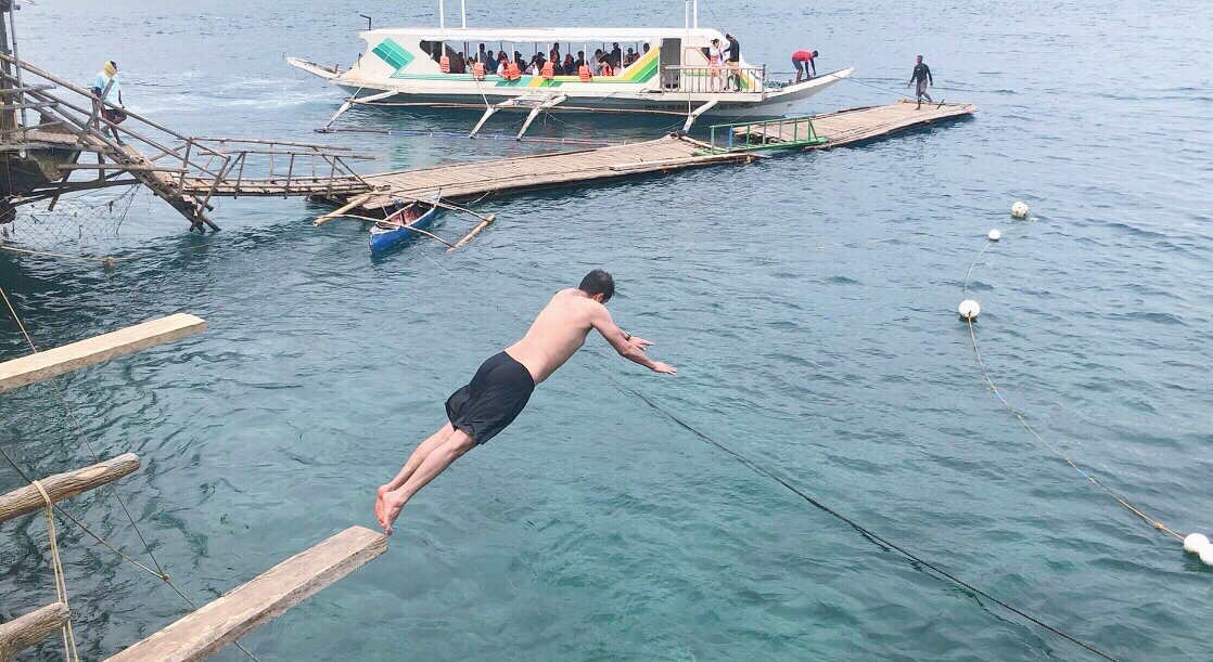 菲律宾的跳岛不推荐!没有泰国的好,浮潜海水浑浊基本没啥可看的。但魔幻岛跳水还有点挑战,有1到7米可以挑战,说实话到跳板前站着还是挺吓人的!但是眼睛一闭就下去,很刺激!我们两个人一起跳了2米,一定记得要捏鼻子合上嘴巴,不然容易呛水。