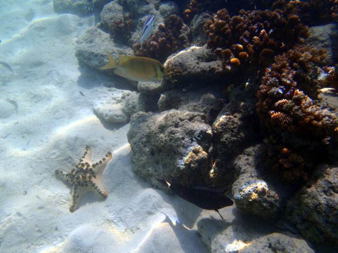 马达京本岛的海底环境非常棒,一入海,仿佛进入了一个超大的水族箱,美丽鱼群、海龟、珊瑚应有尽有,水下25米还有一艘沉船,沉船上有一个水下邮筒,可提前准备好明信片做好防水工作前往水下寄信,度假村工作人员会定期收信帮助邮寄。