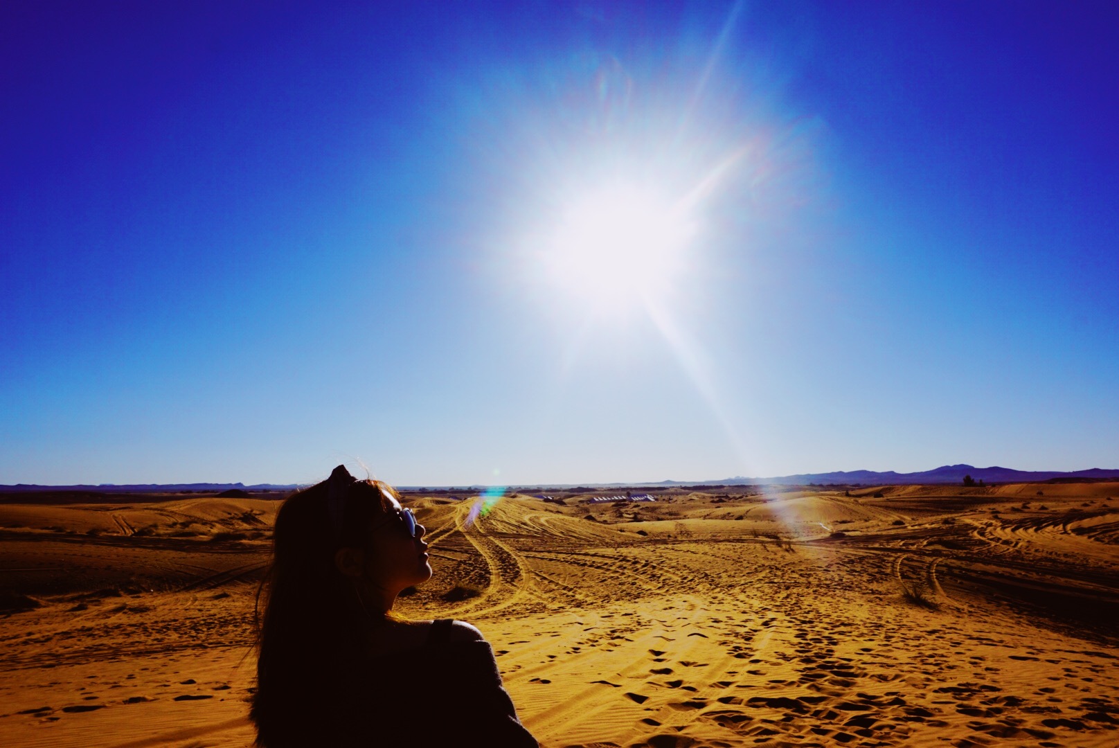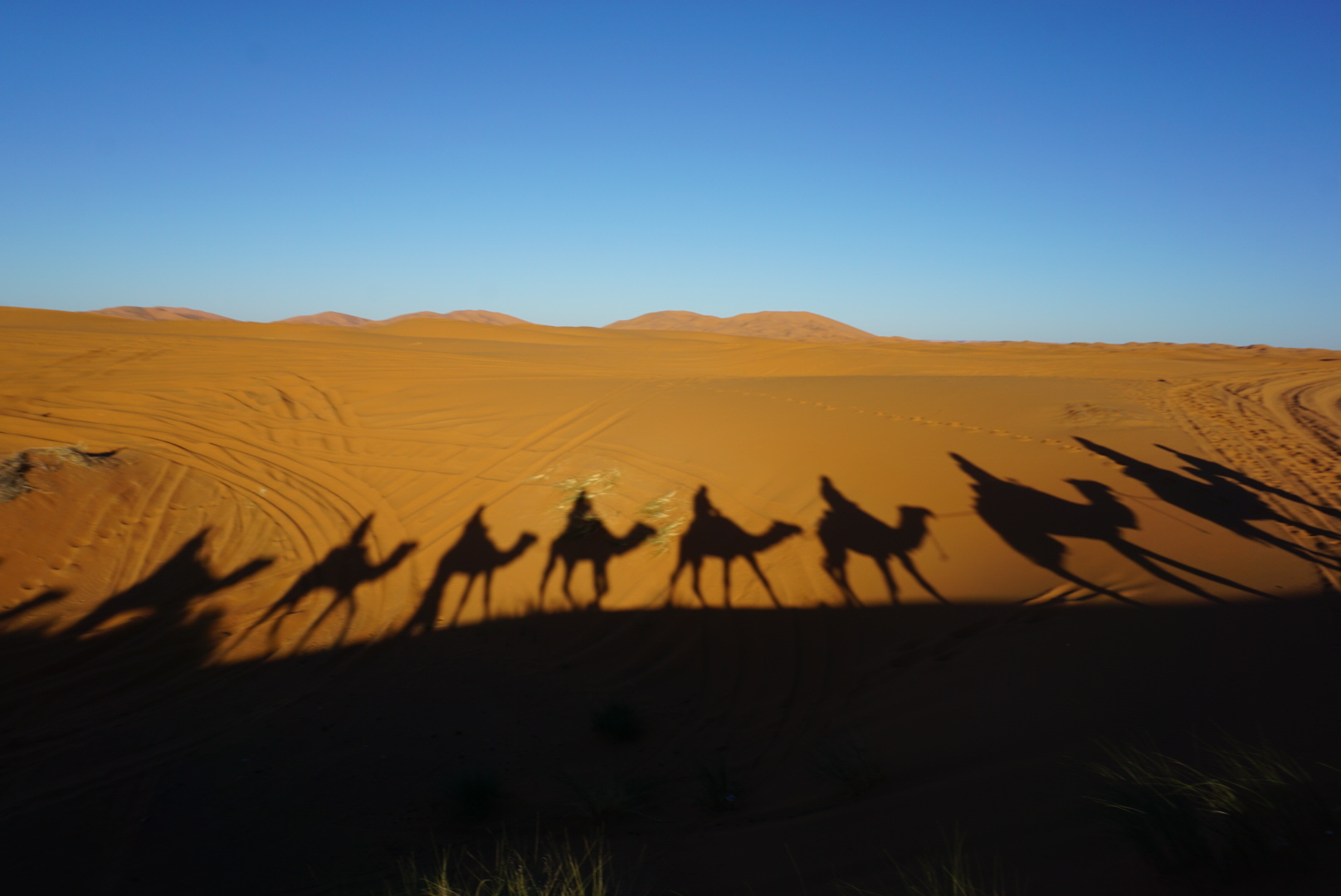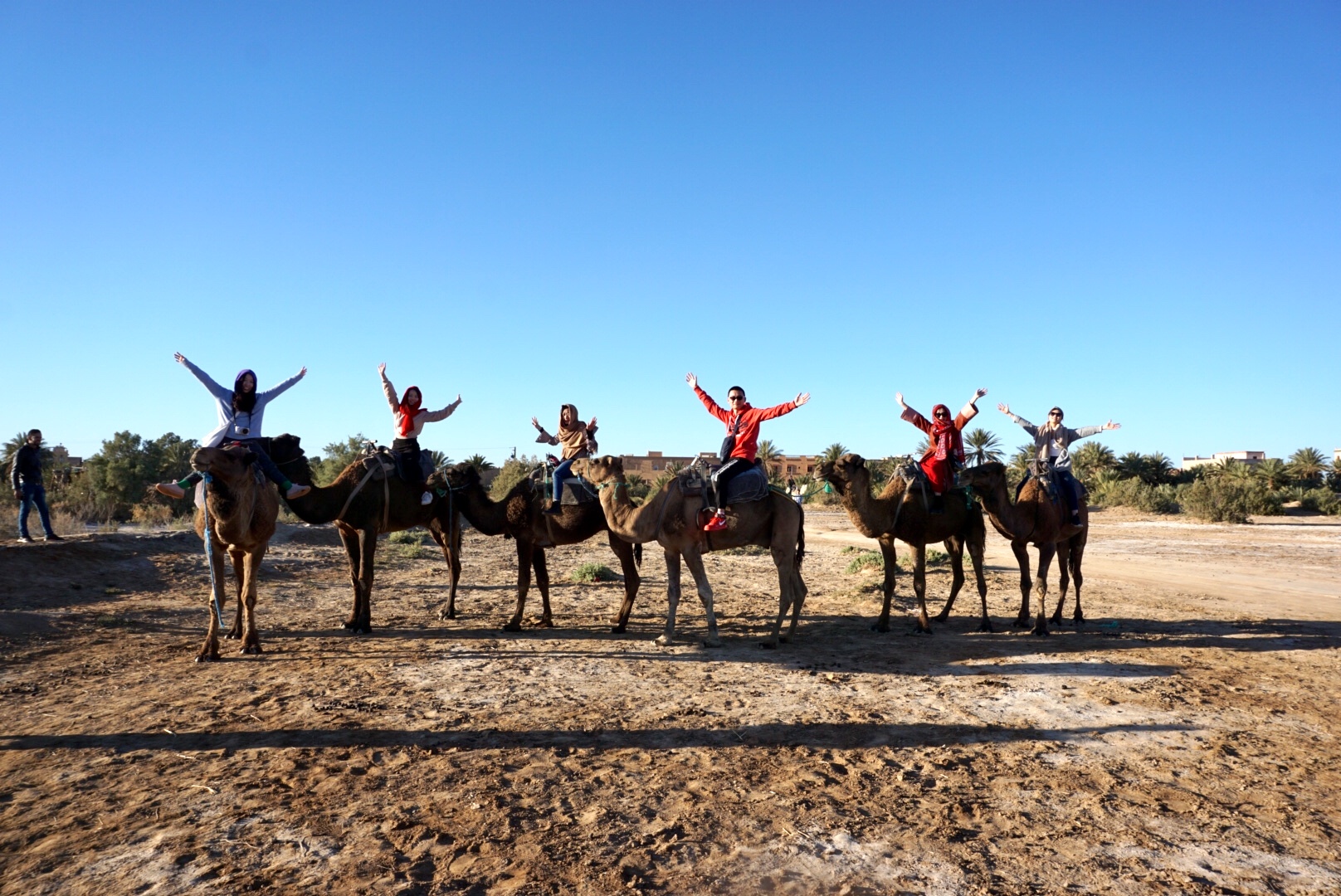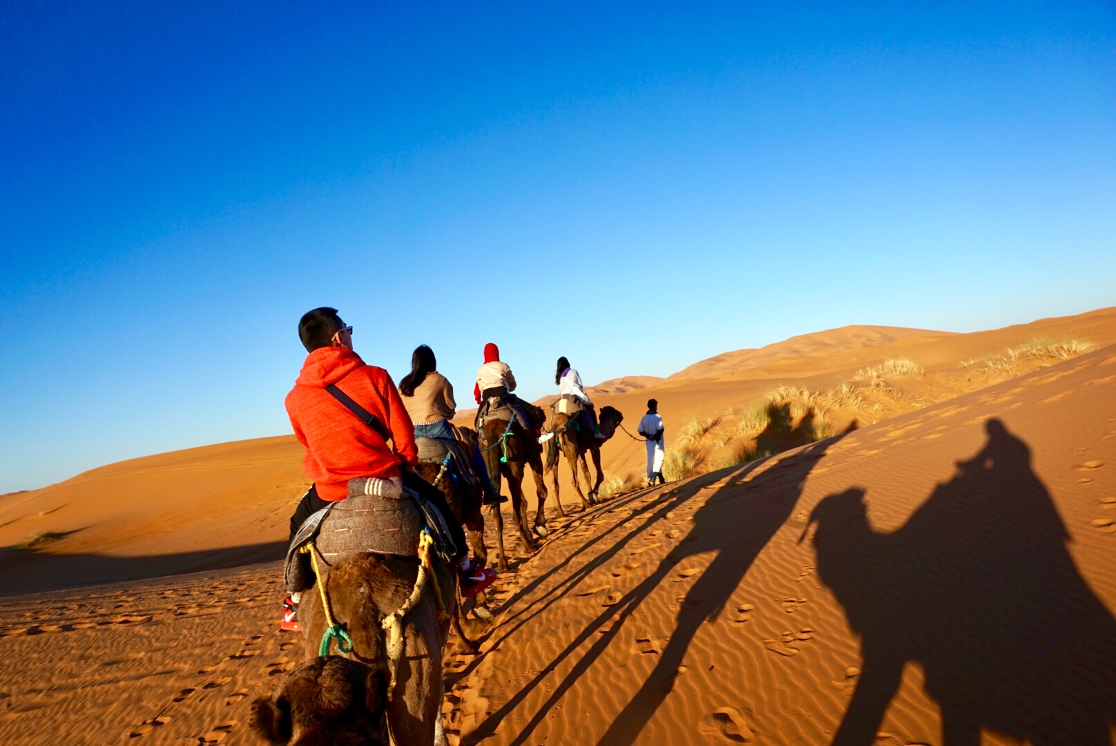 吃過早餐後就開始往 撒哈拉沙漠 出發了,早上10點半開始出發,途中有在咖啡館停頓過吃午餐和休息,直到下午5點才真正到達,一路顛簸,我們6個都快差點要吐了。不過踏上沙漠那一刻是開心的,坐駱駝也是好玩的,尤其當駱駝站起來和蹲下去的那幾秒,雖然後來屁股痛了2天